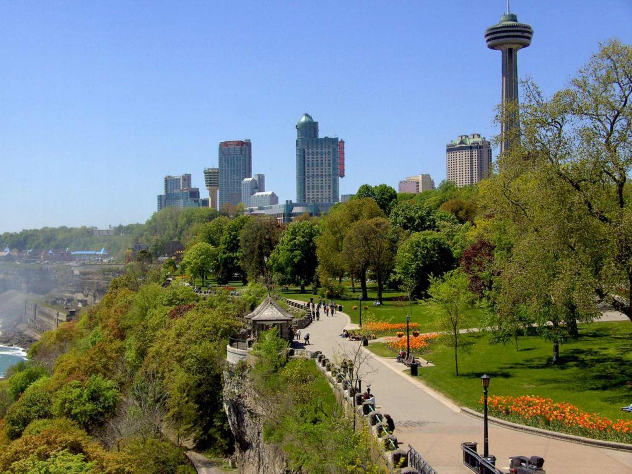 Parkanlage in Niagara Falls mit Hotelanlagen.
