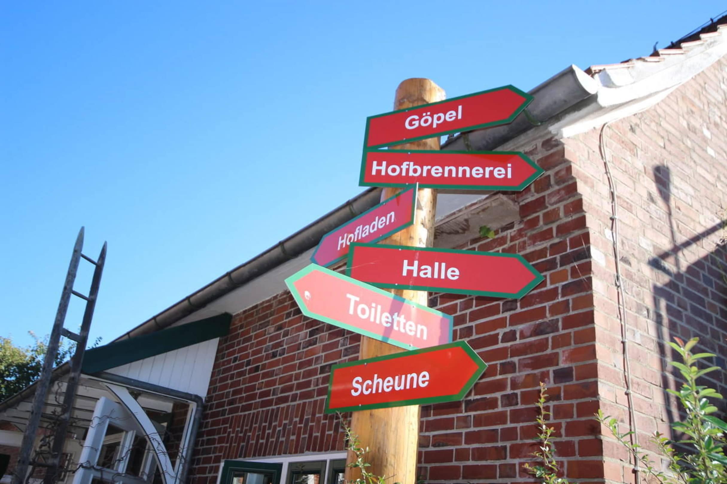Wegweiser auf dem Obsthof