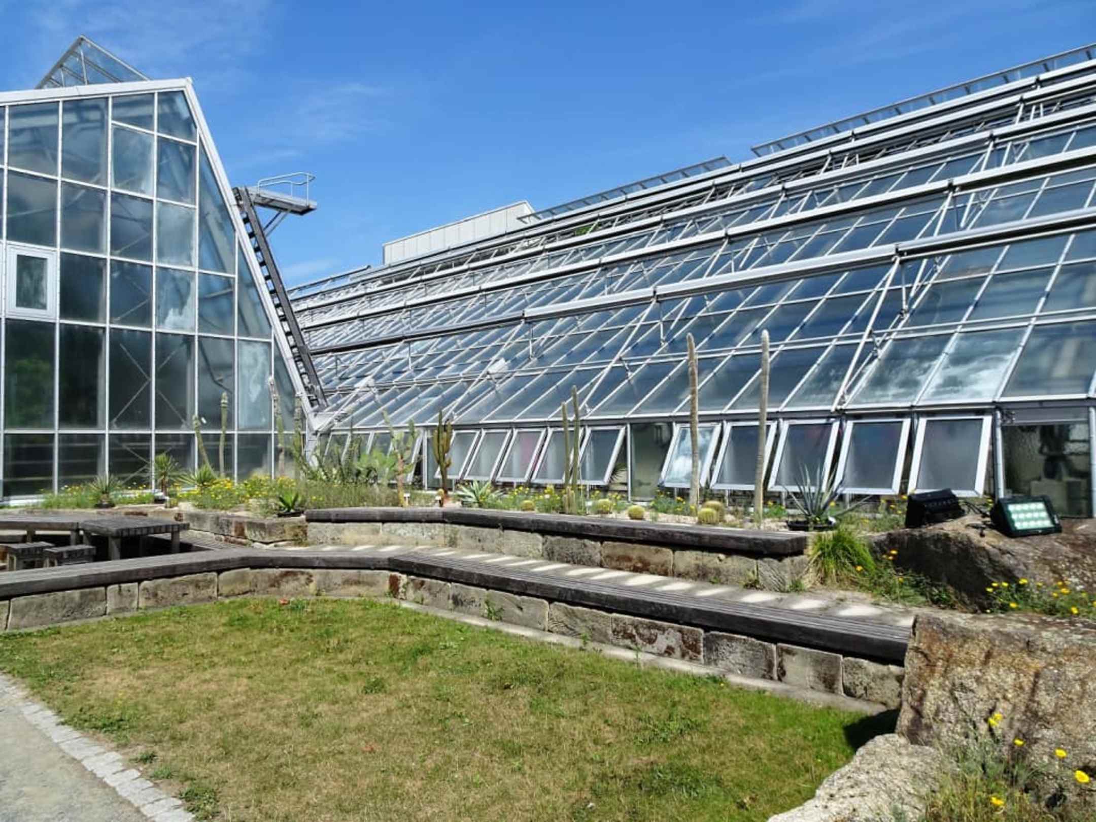 Blick auf die Gewächshäuser