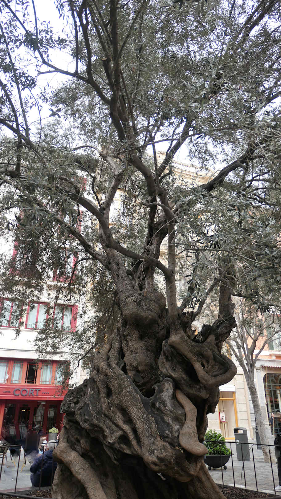 Der knorrige Olivenbaum auf der Plaça Cort