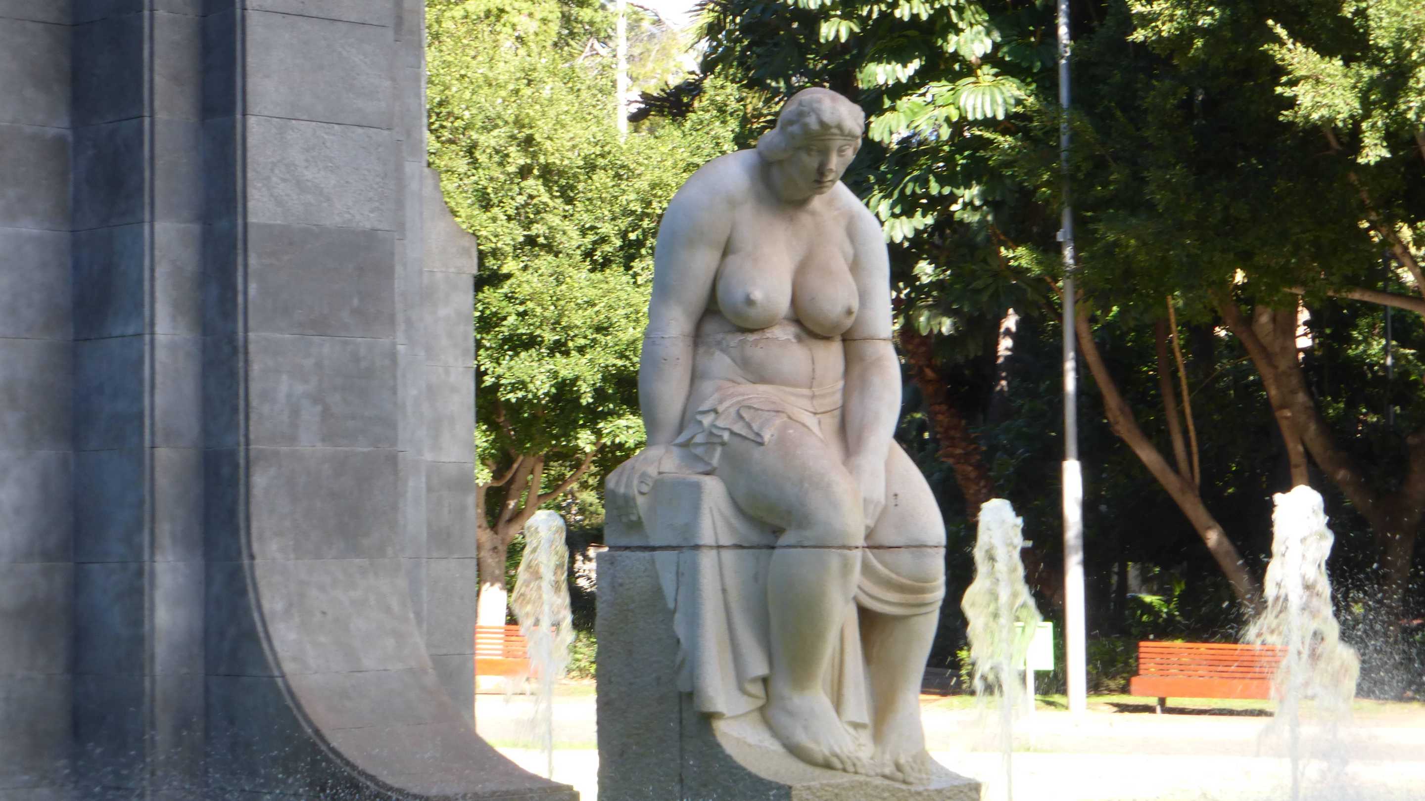 Die "Dicke Frau" im Park vor dem Denkmal