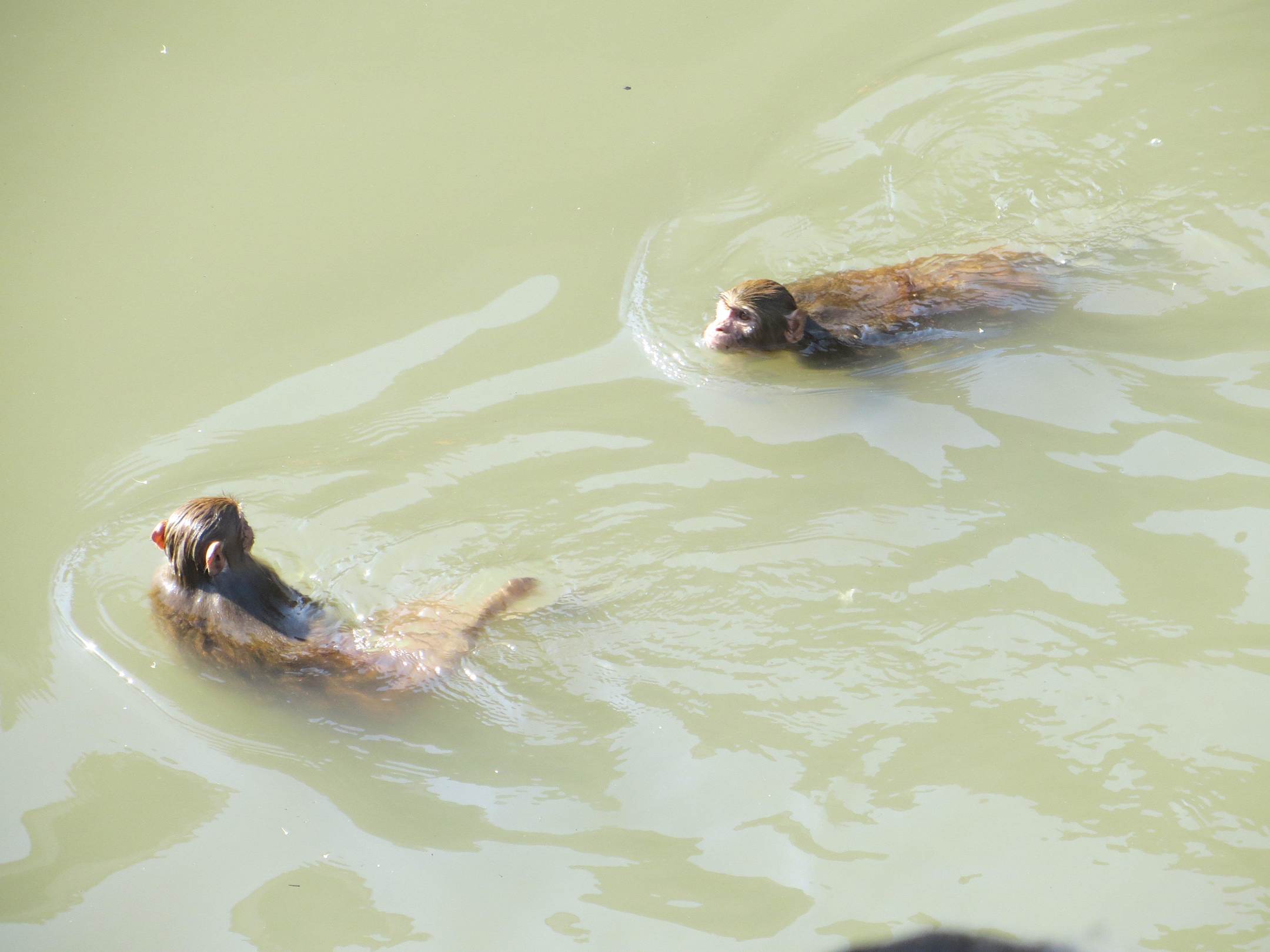 Affen schwimmen im Fluss
