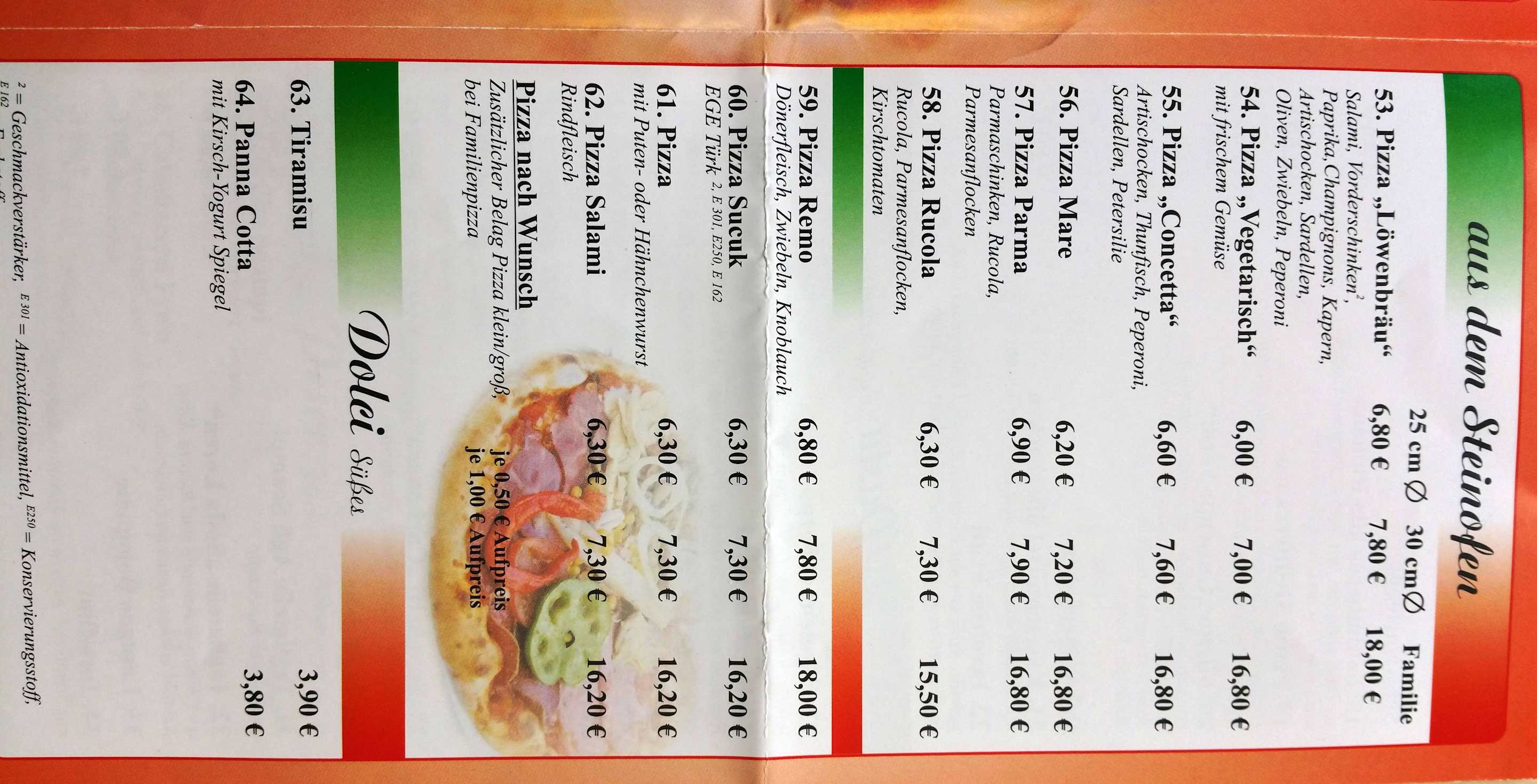 Speisekarte Da Remo