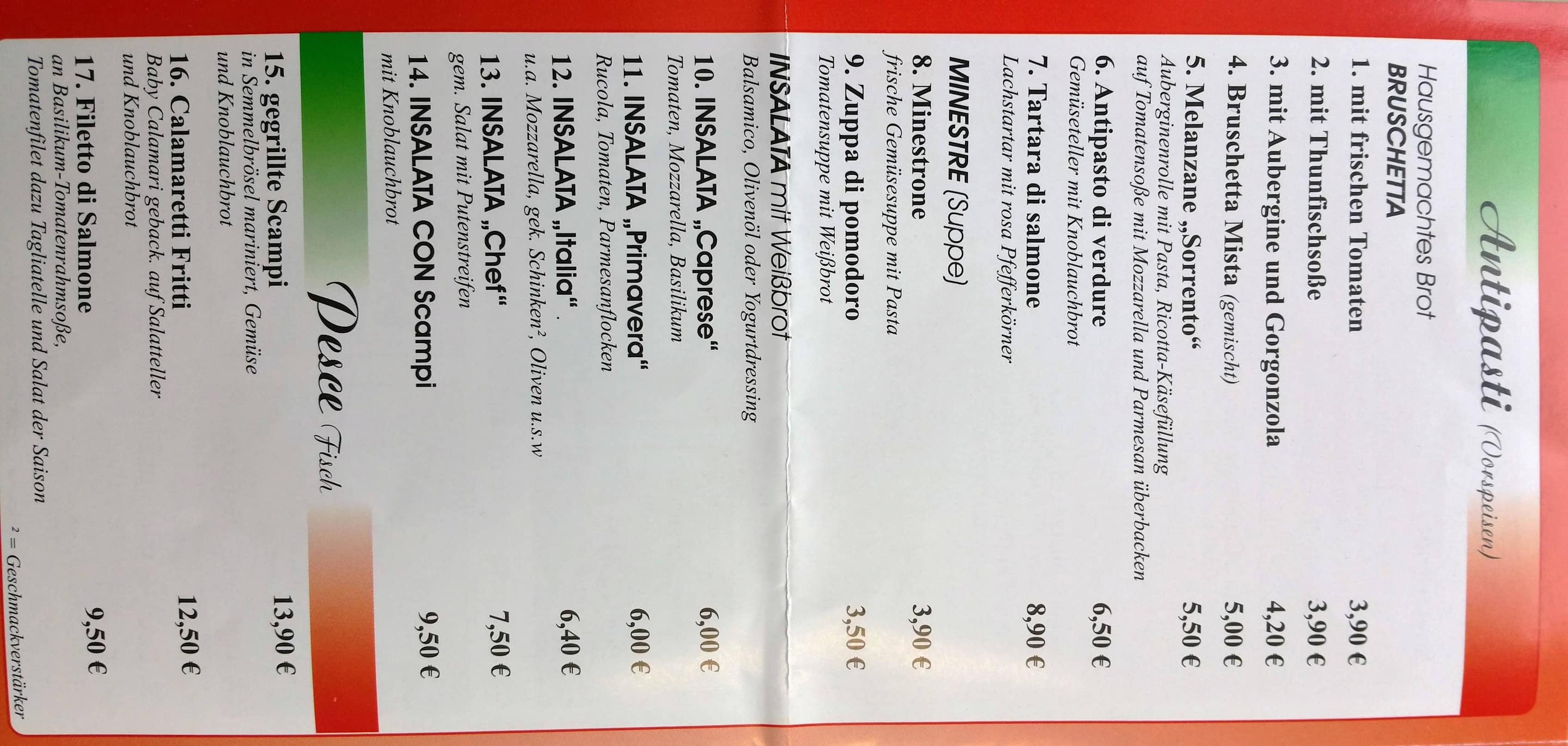 Speisekarte Da Remo