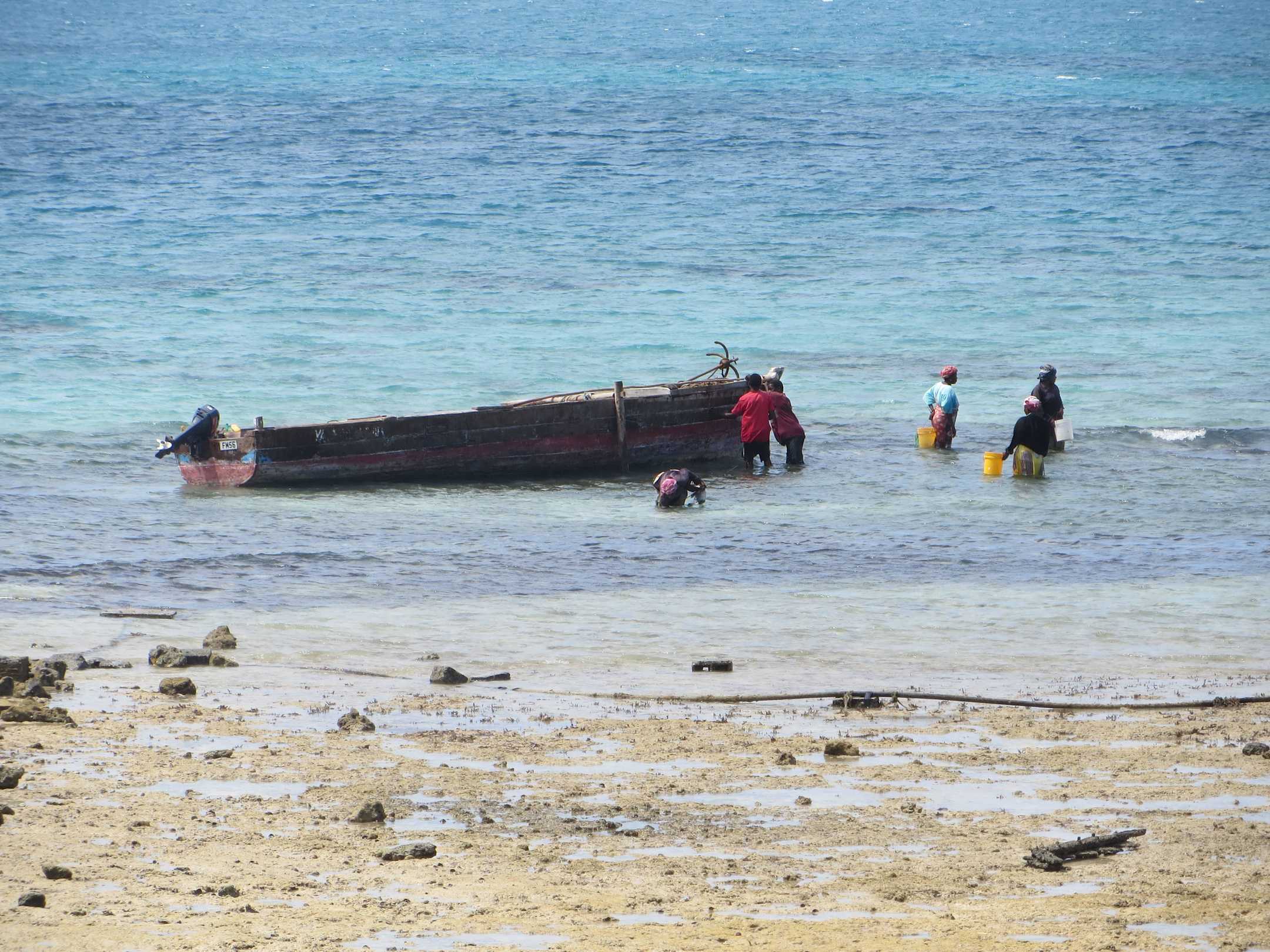 Fischer am Strand bei der Arbeit