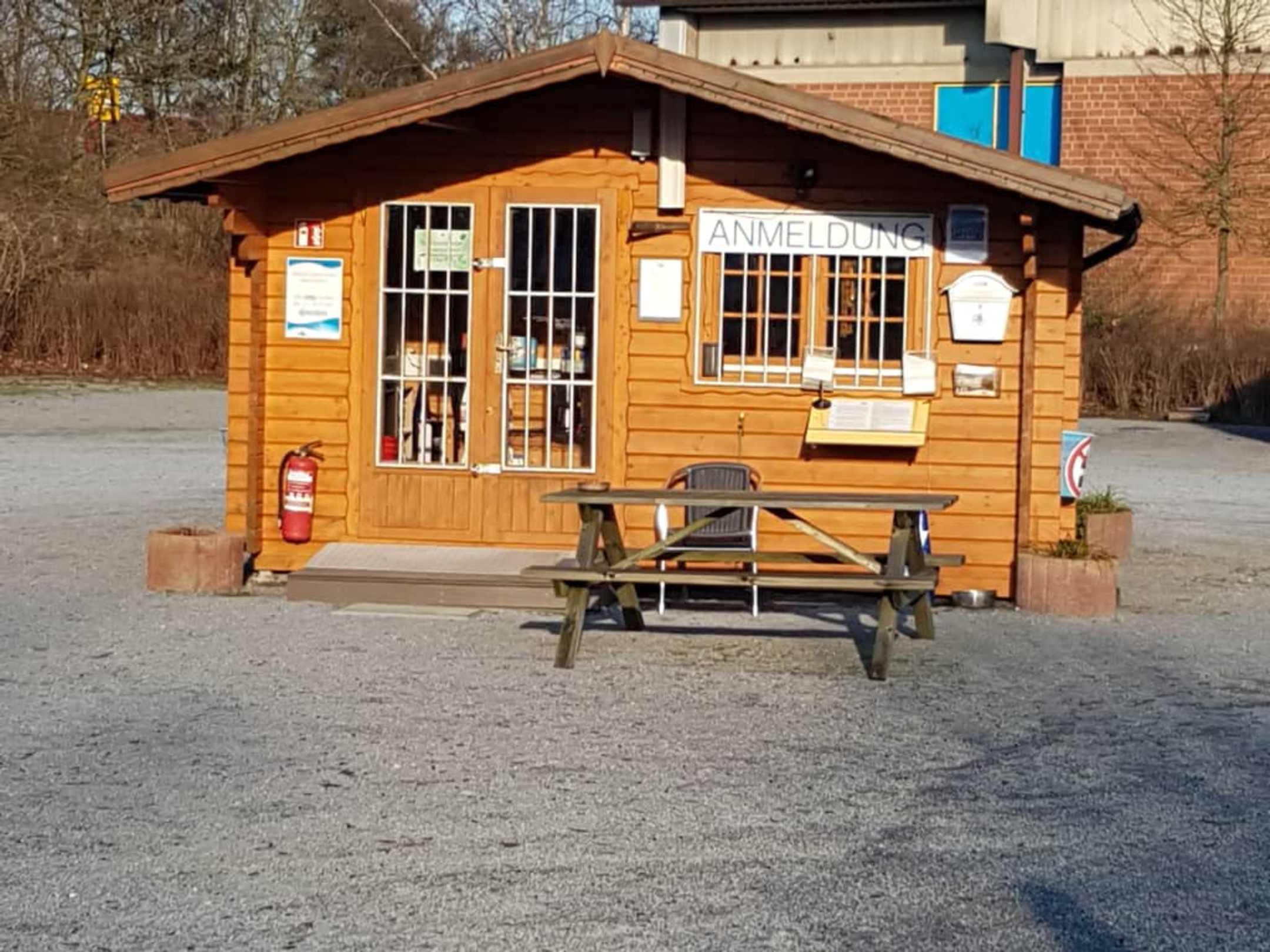 Anmeldehäuschen mit Brötchendienst