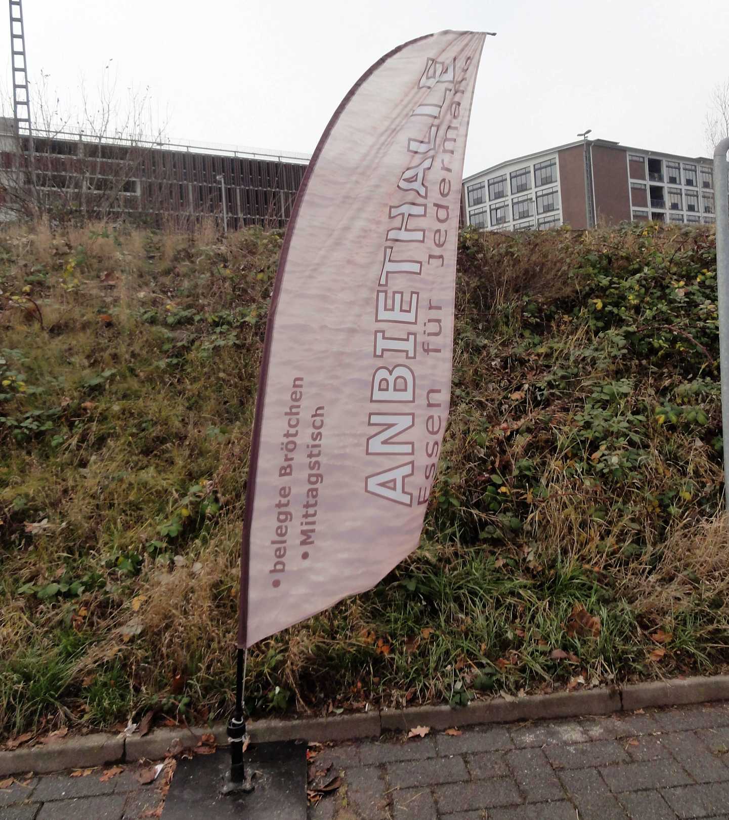 Hinweis-Fahne für die Anbiethalle