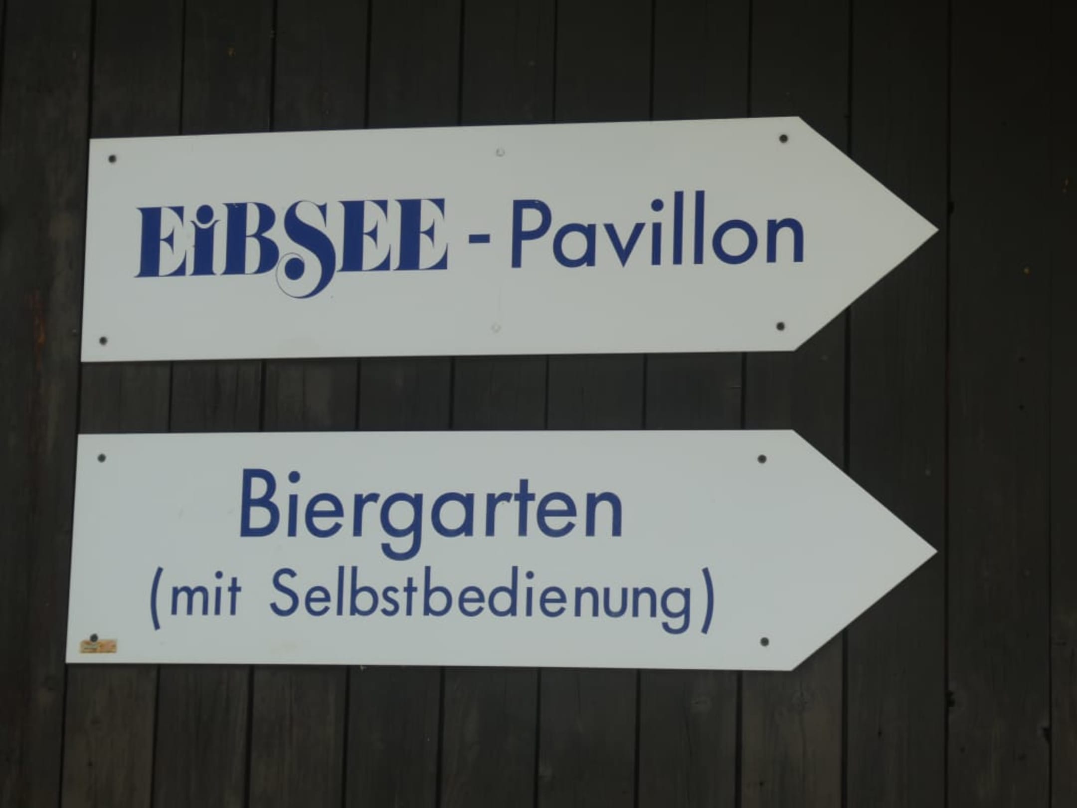 Wegweiser Eibsee-Pavillon mit Terrasse/Biergarten