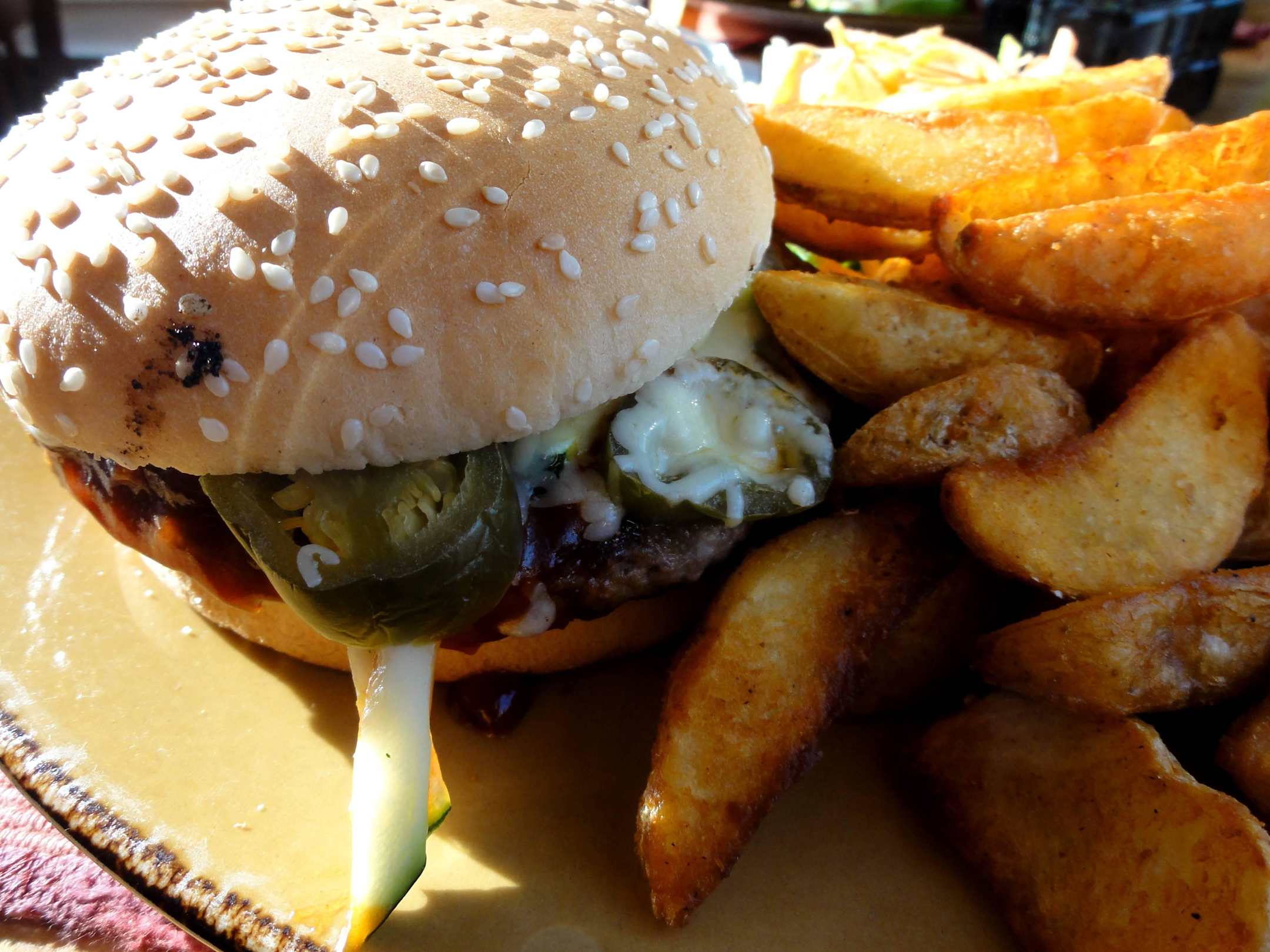 Chili-Burger mit Kartoffeln