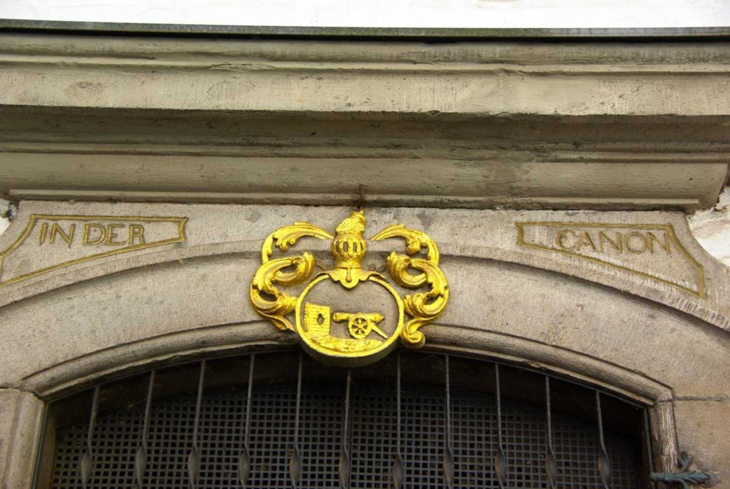 En de Canon Zeichen in Gold am Eingang