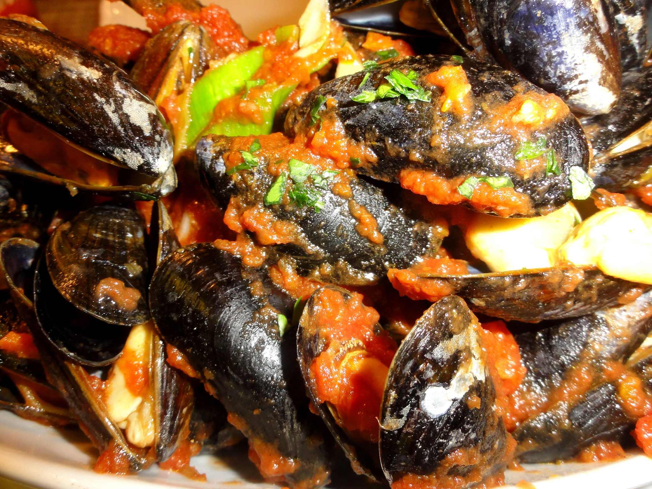 Frische Muschlen in Knobi-Tomatensud im Gargano