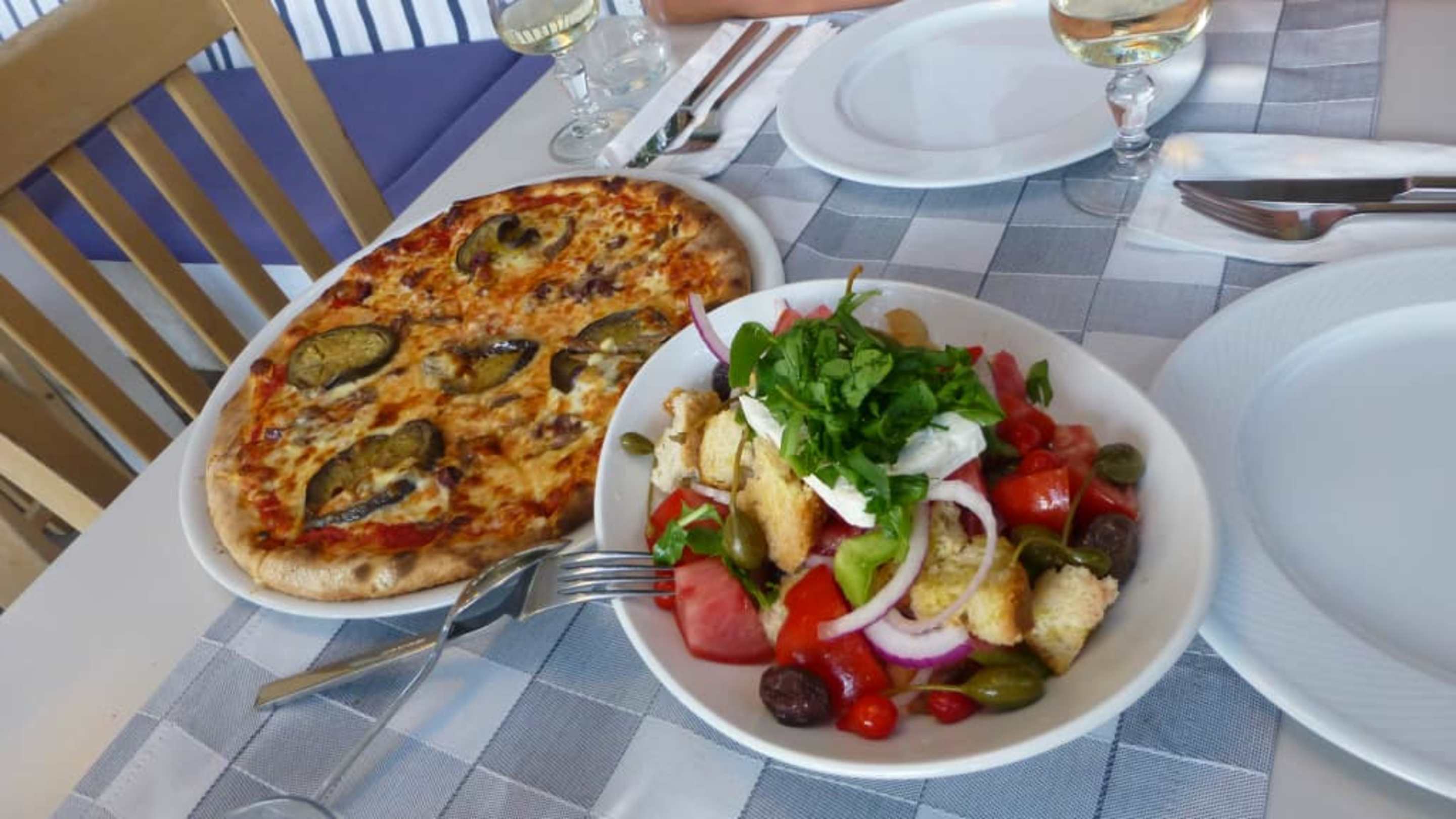 Leckere Pizza und Salat