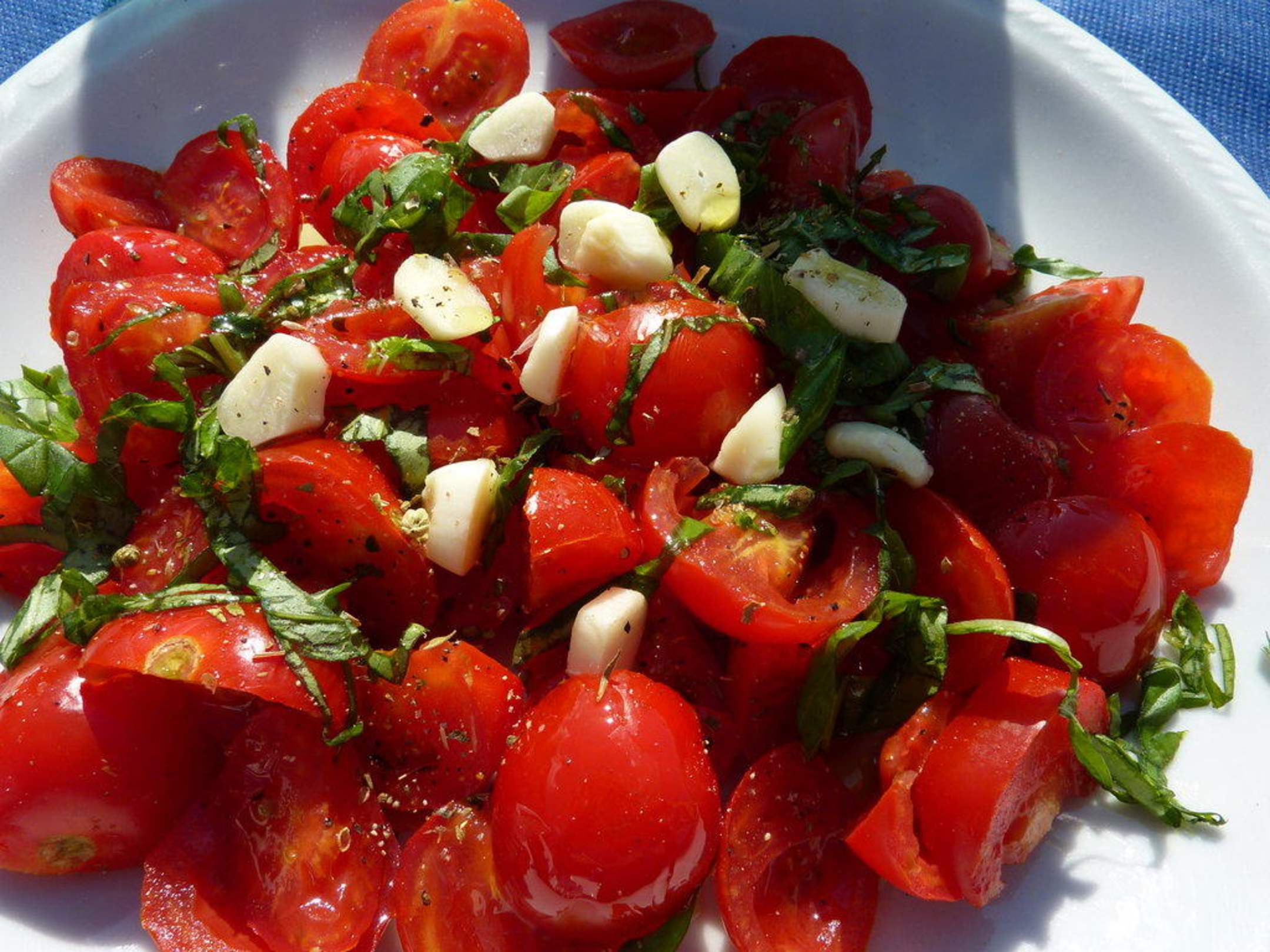 Ganz fruchtige Tomaten mit reichlich Knoblauch