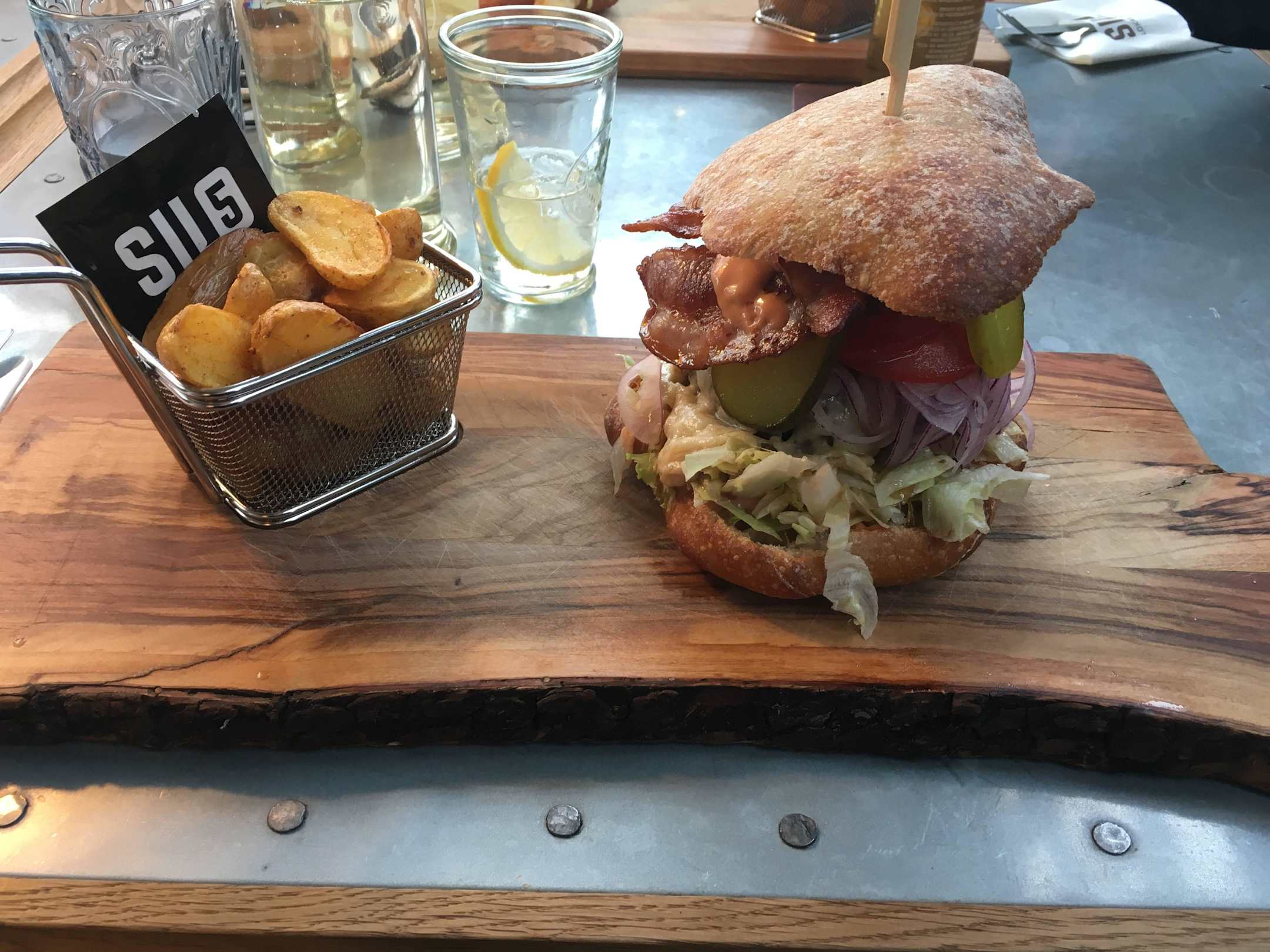 Burger mit Kartoffelecken