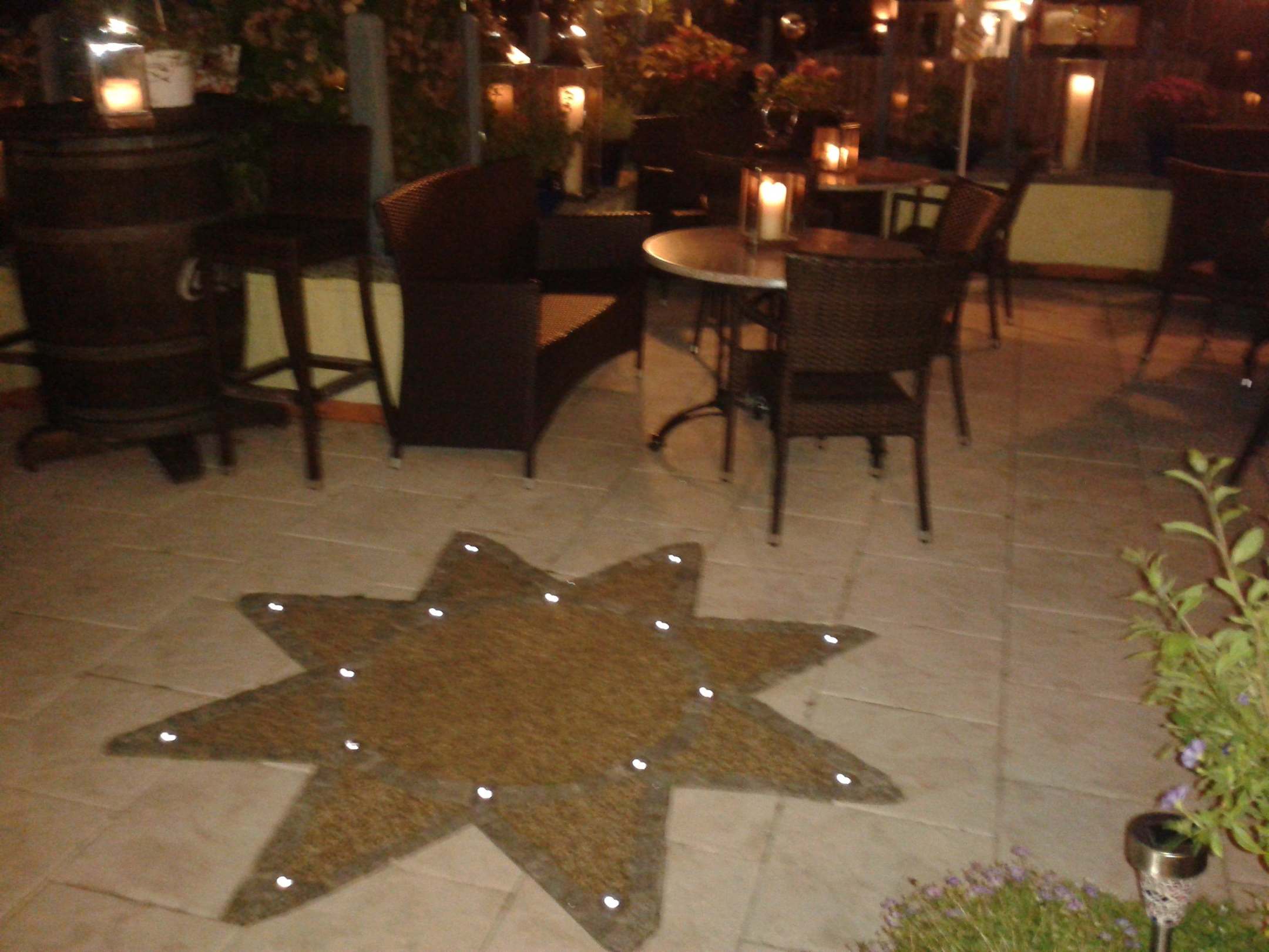 A.Terrasse bei Dämmerung