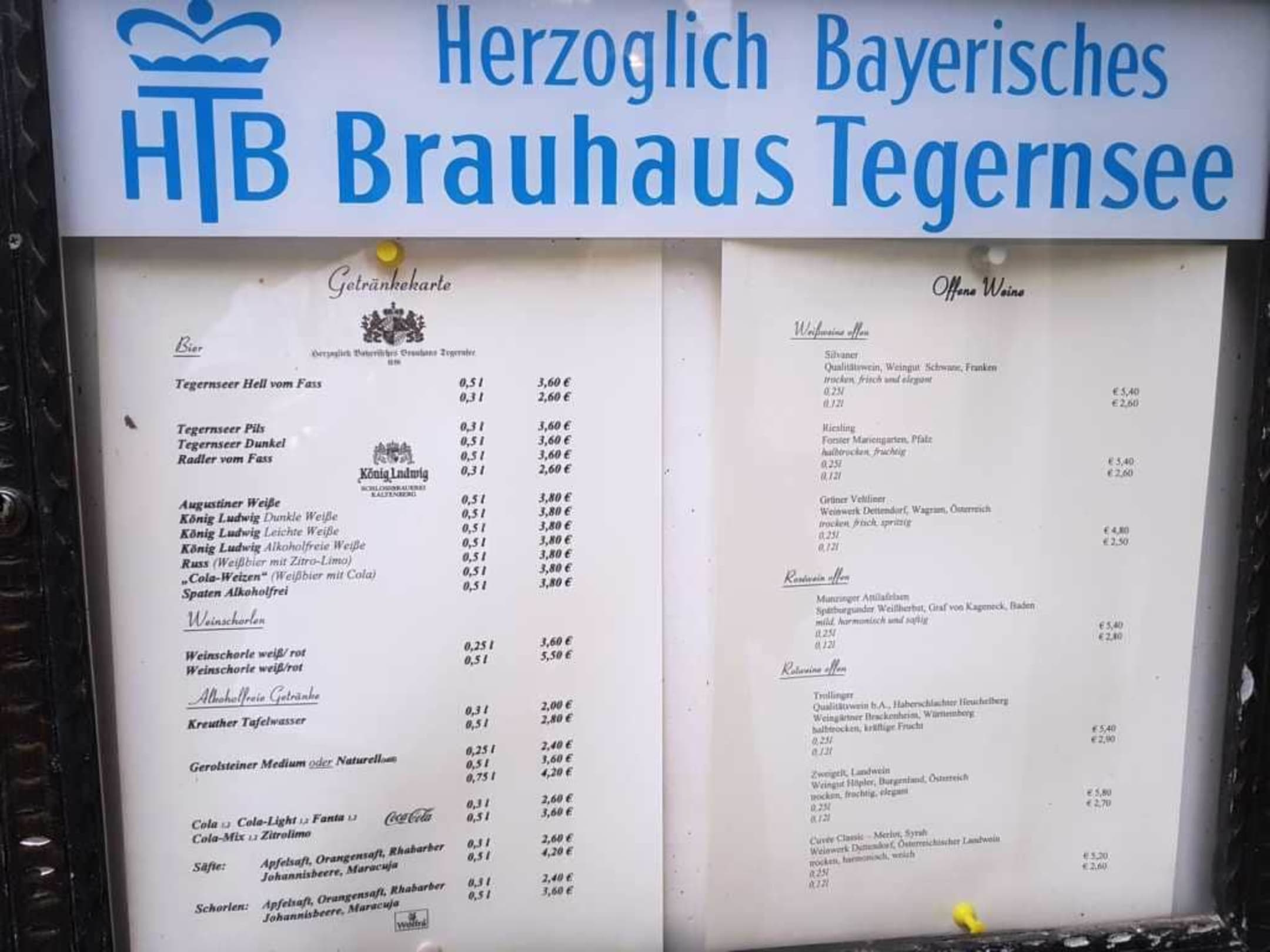 Strassenkarte Speisen und Getränke