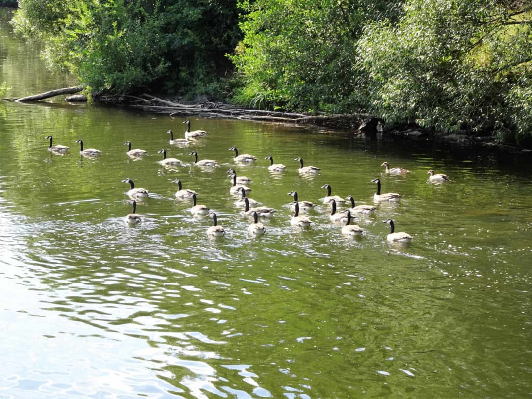 Wildgänse auf der Rodach am Steg