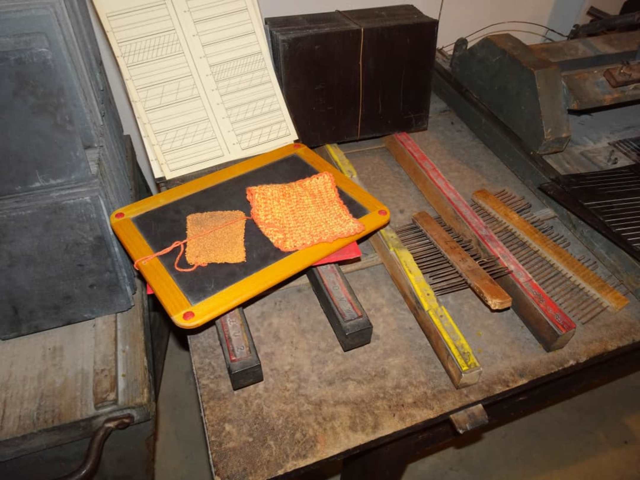 Arbeitsplatz mit fertiger Schiefertafel