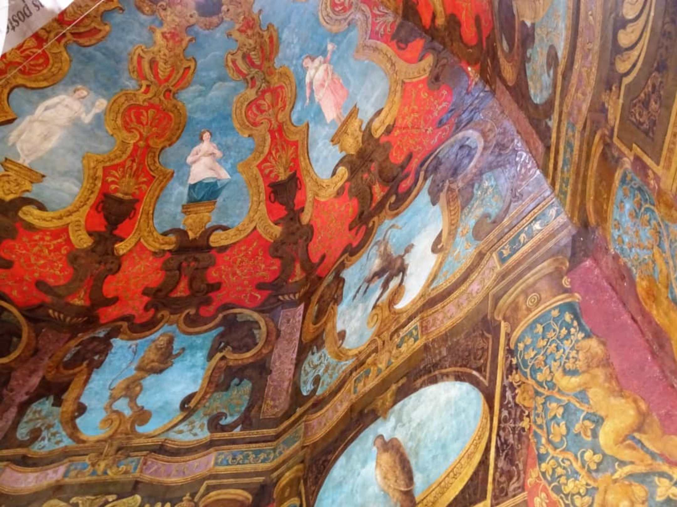 Blick auf die bemalte Decke im Schloss Hellbrunn
