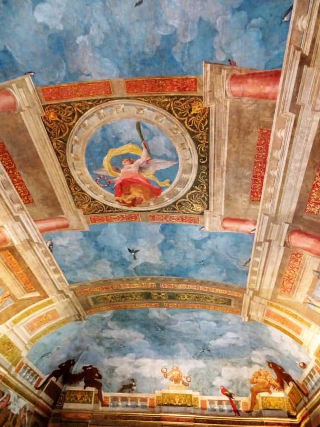 Blick auf die bemalte Decke im Schloss Hellbrunn
