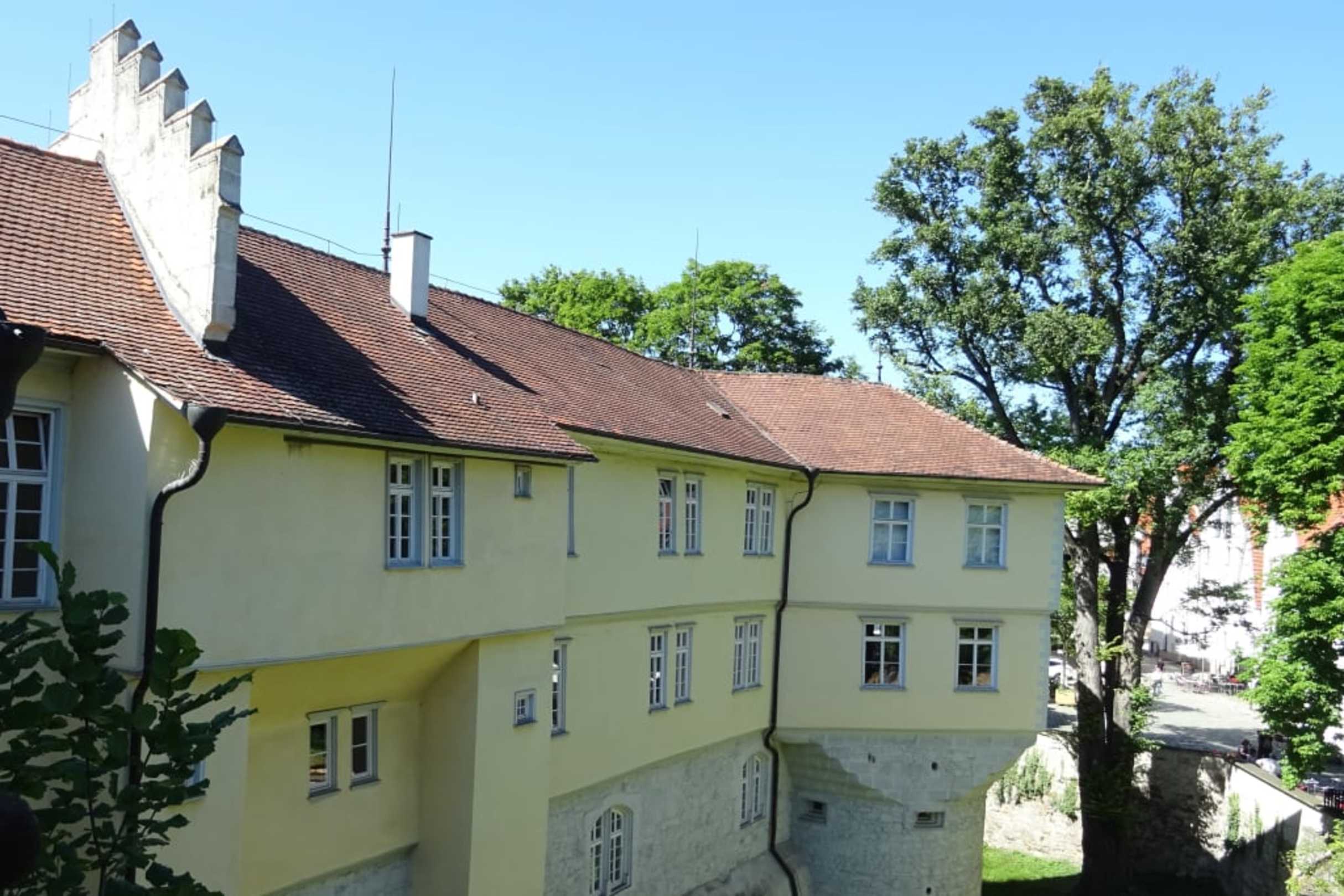Der trocken gelegte Wassergraben ums Schloss