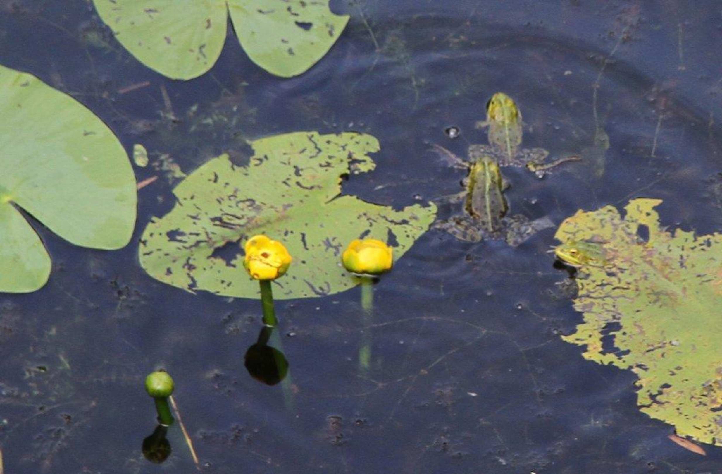 Viele Frösche zwischen den Seerosen