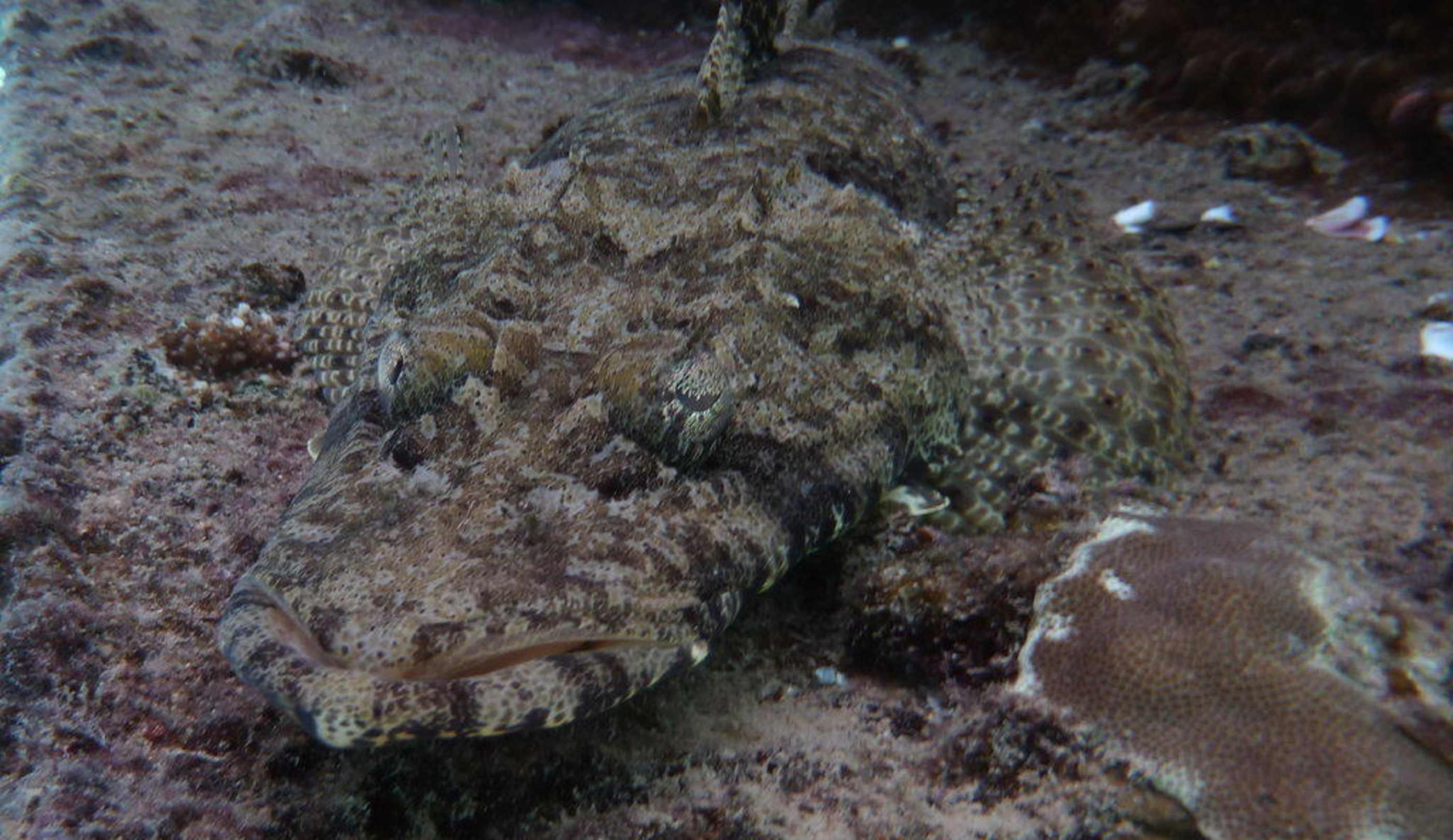 Krokodilfisch unter dem Steg am Hotel Utopia Beach Club