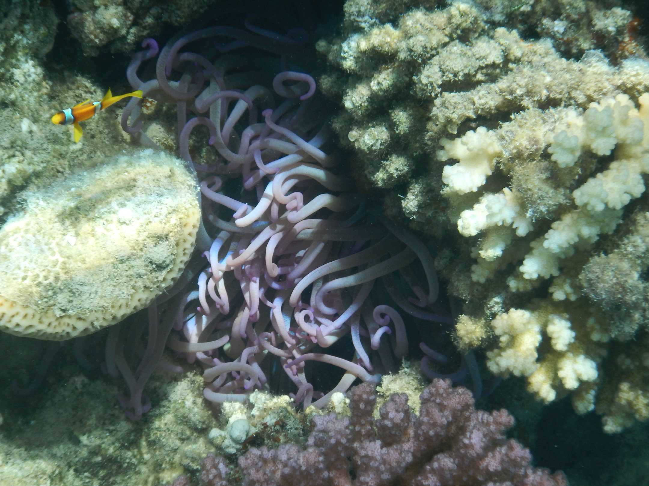 Anemonenfisch an der einzigen lila Anemone im Riff