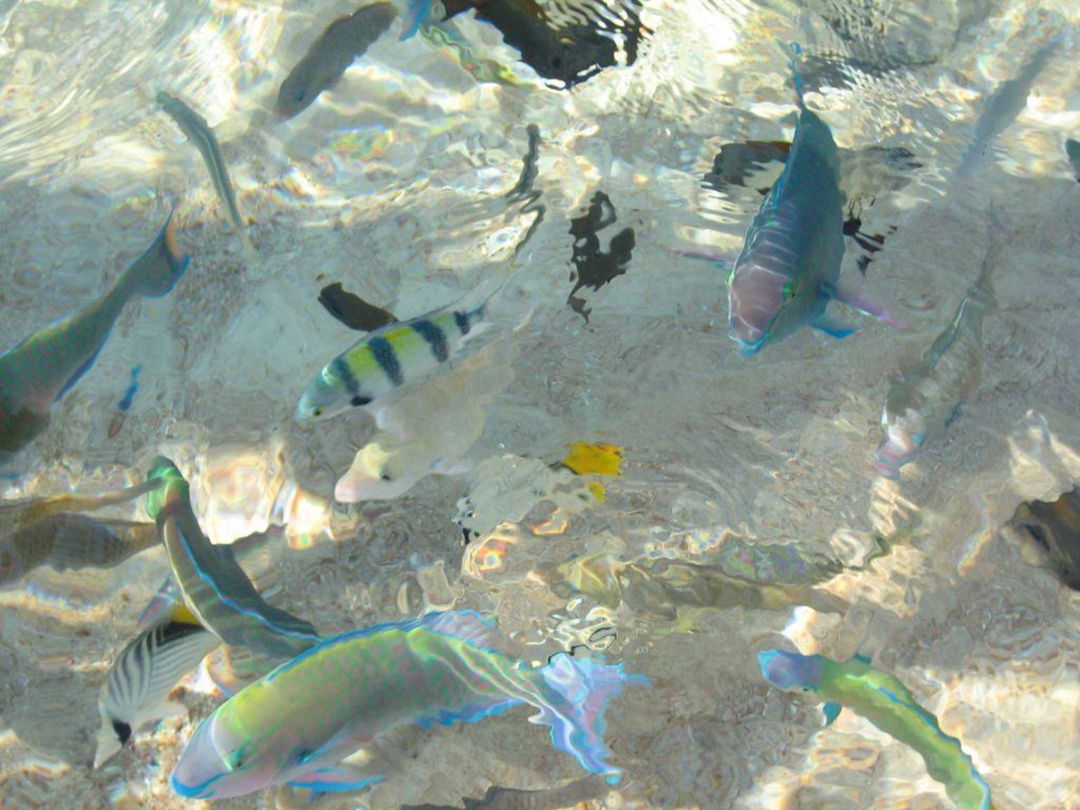 Fische füttern am Strand