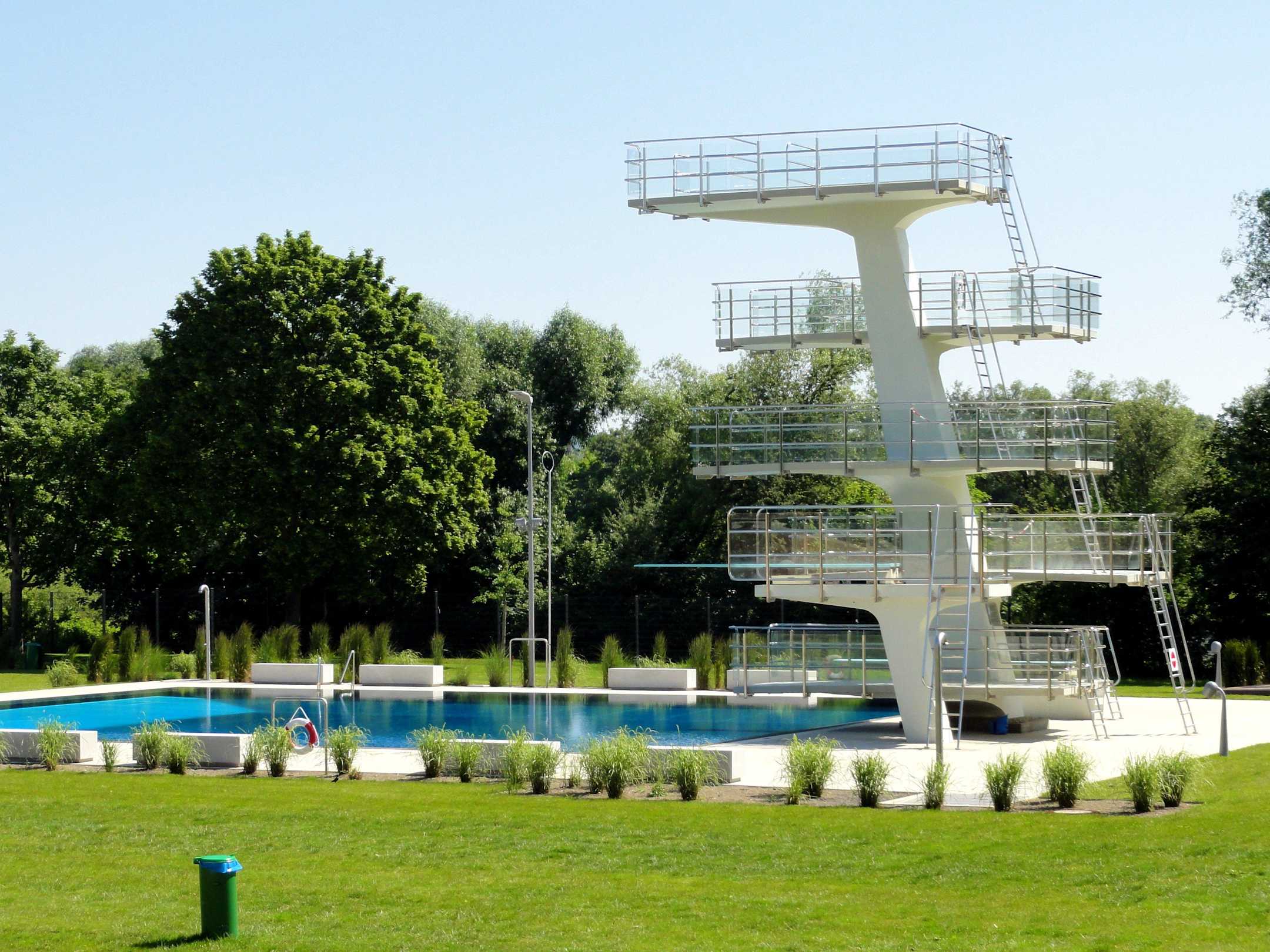 Blick auf Sprungturm im Außenbereich