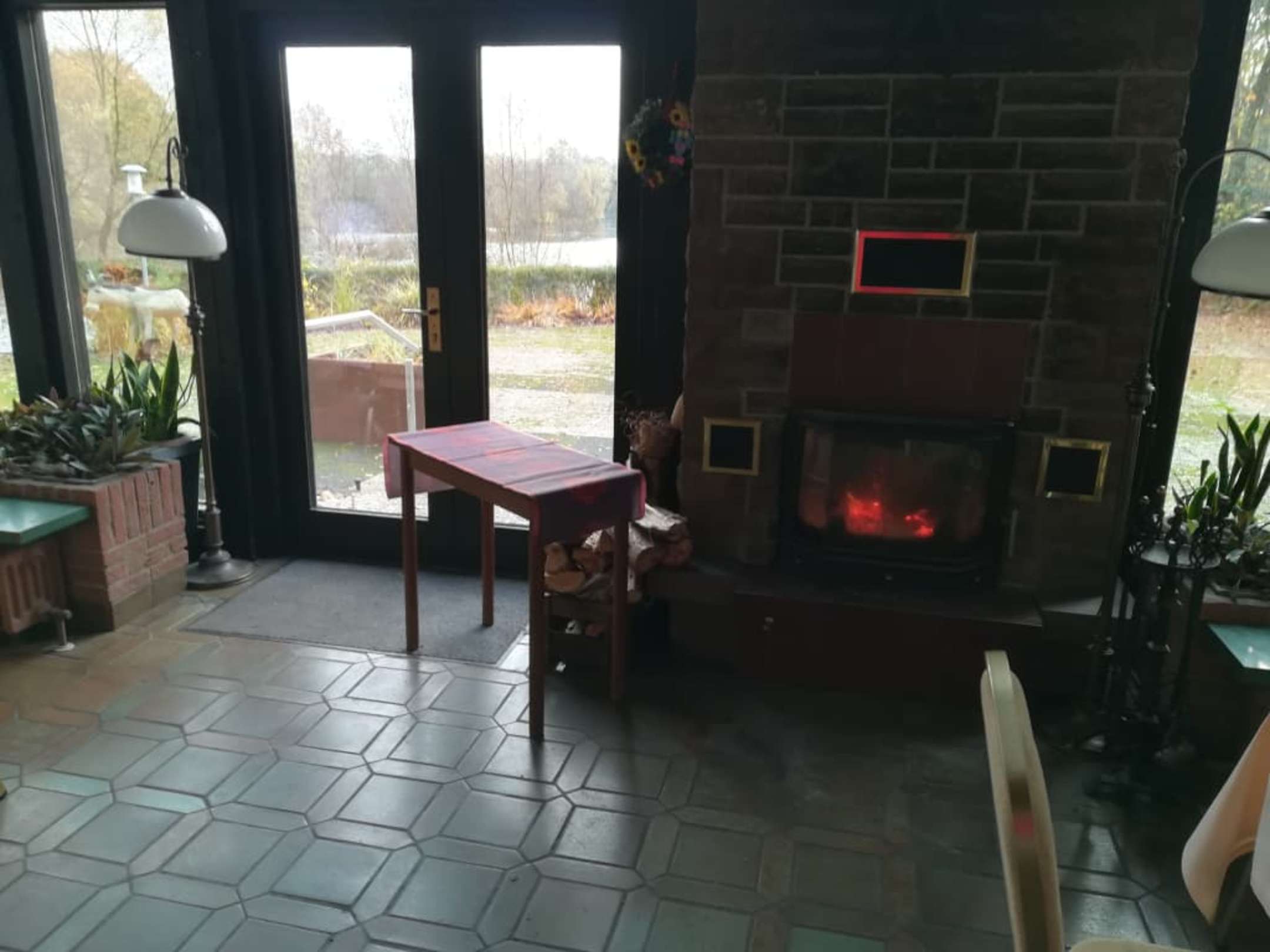 Blick zum kamin und Terasse