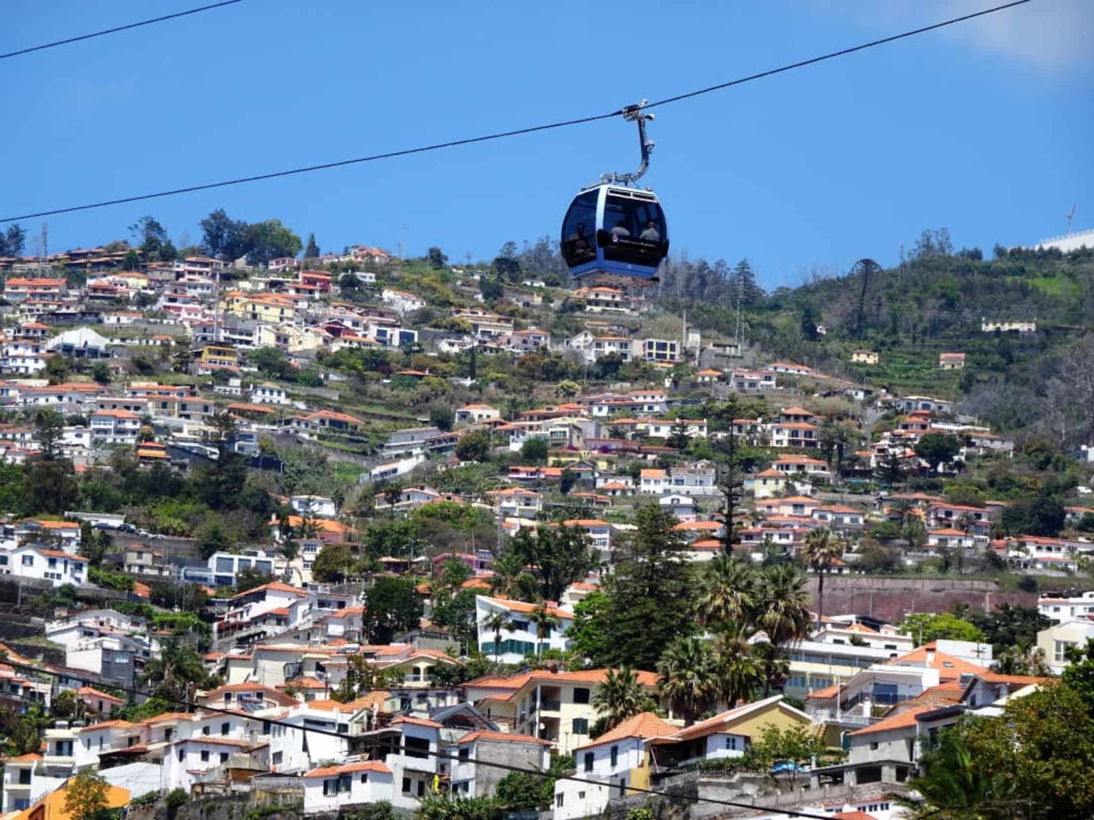 Blick auf eine Gondel über den Häusern von Funchal