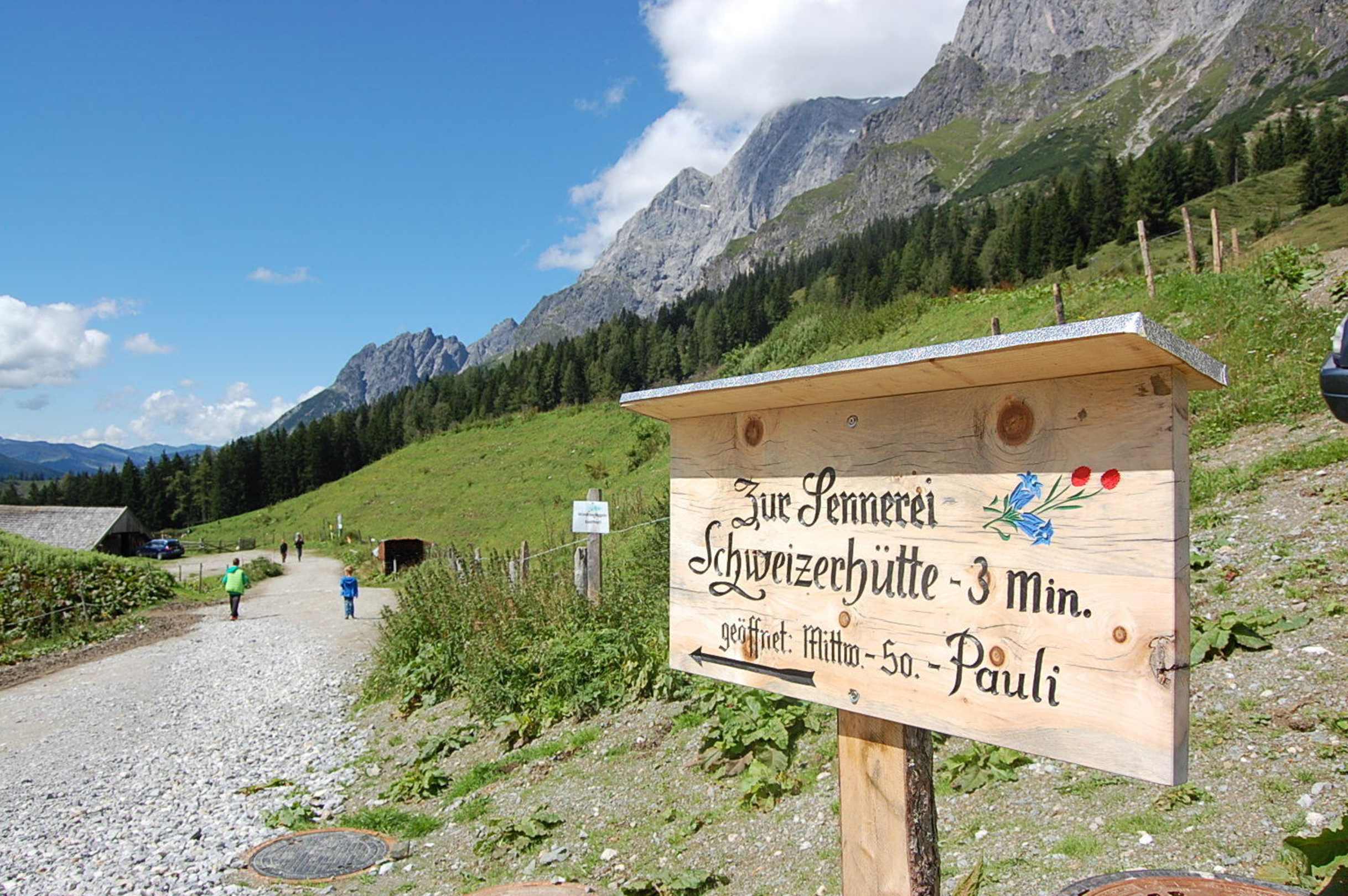 Hinweisschild zu Paulis Sennerei
