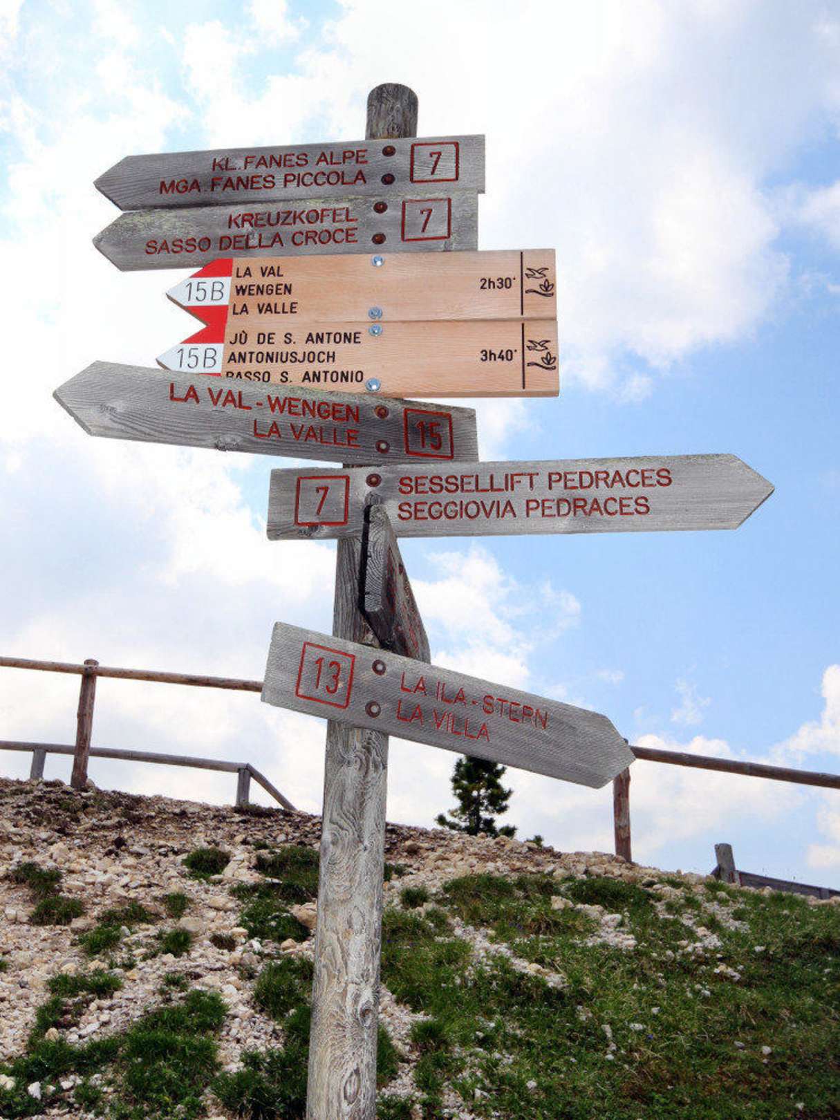 Wegweiser am Rifugio Santa Croce Hl. Kreuz