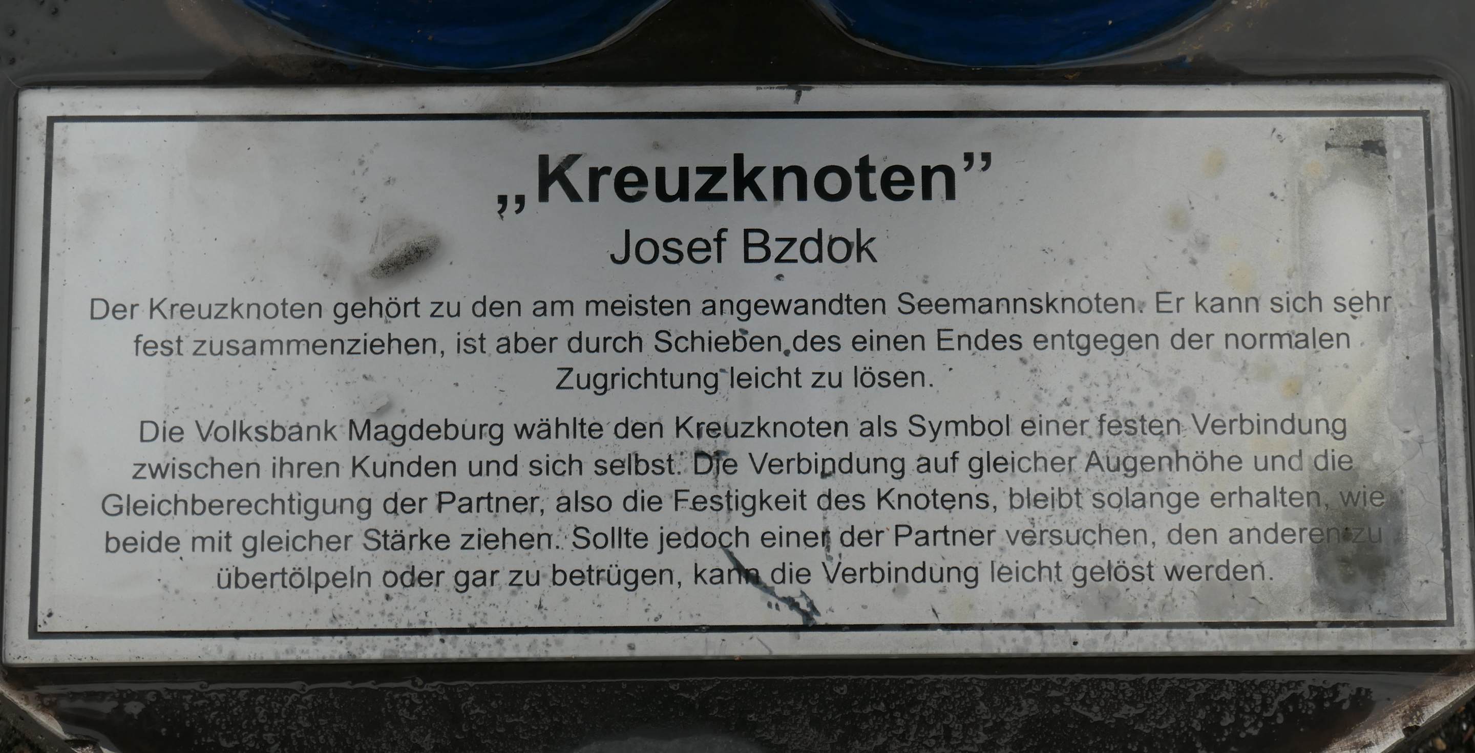 Kreuzknoten vor der Volksbank Magdeburg eG