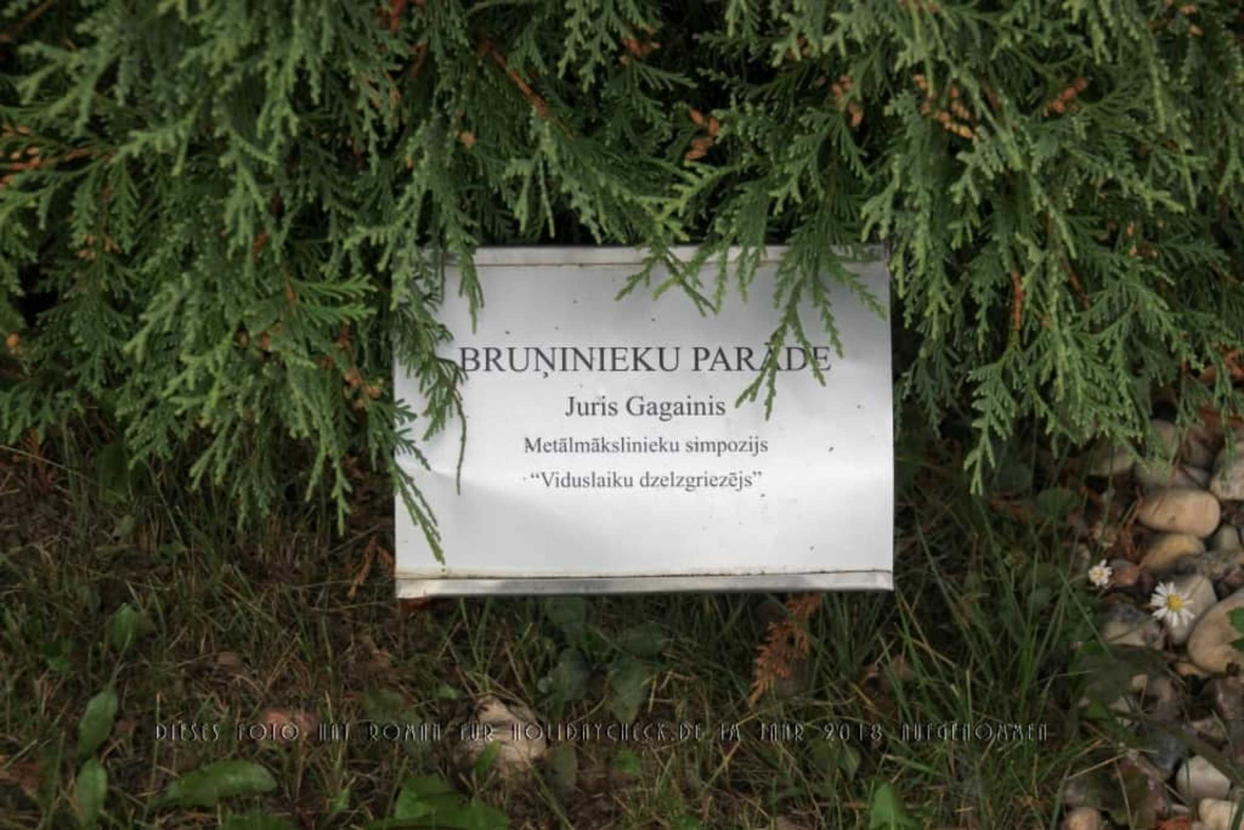 Das beschriebene Schild zur Bruninieku Parade