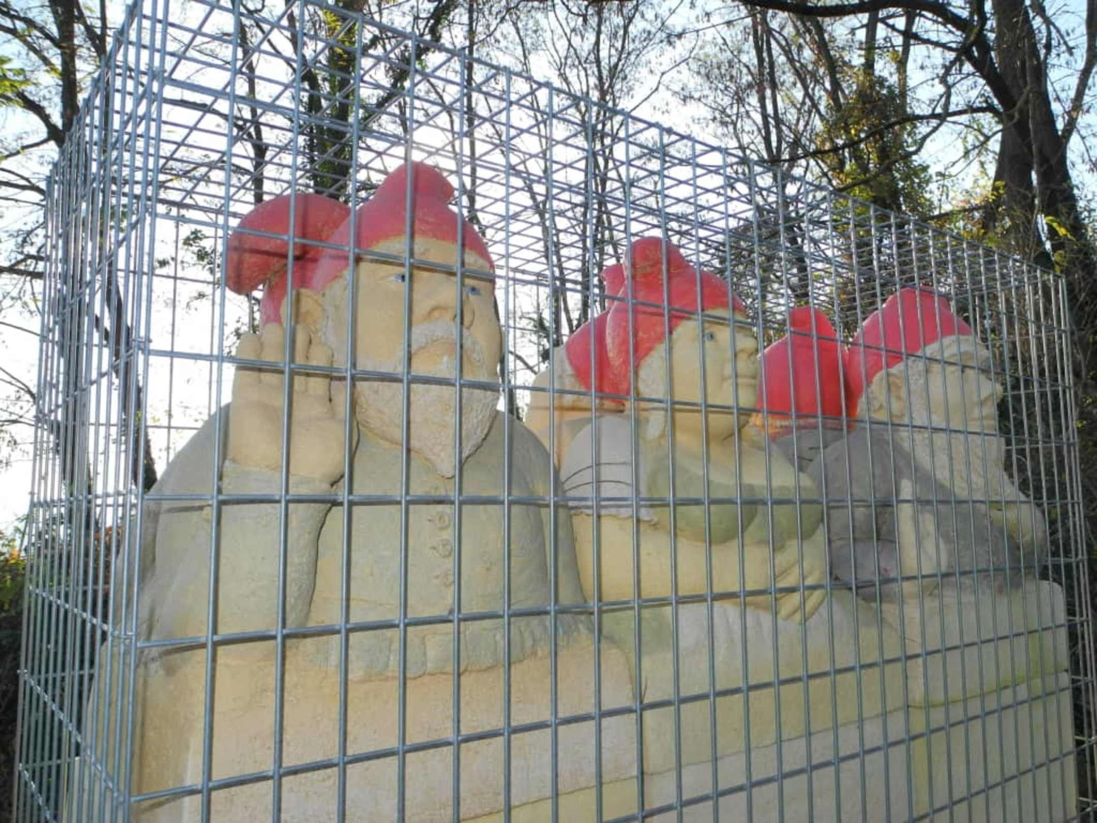 Köpfe hinter Gabionen