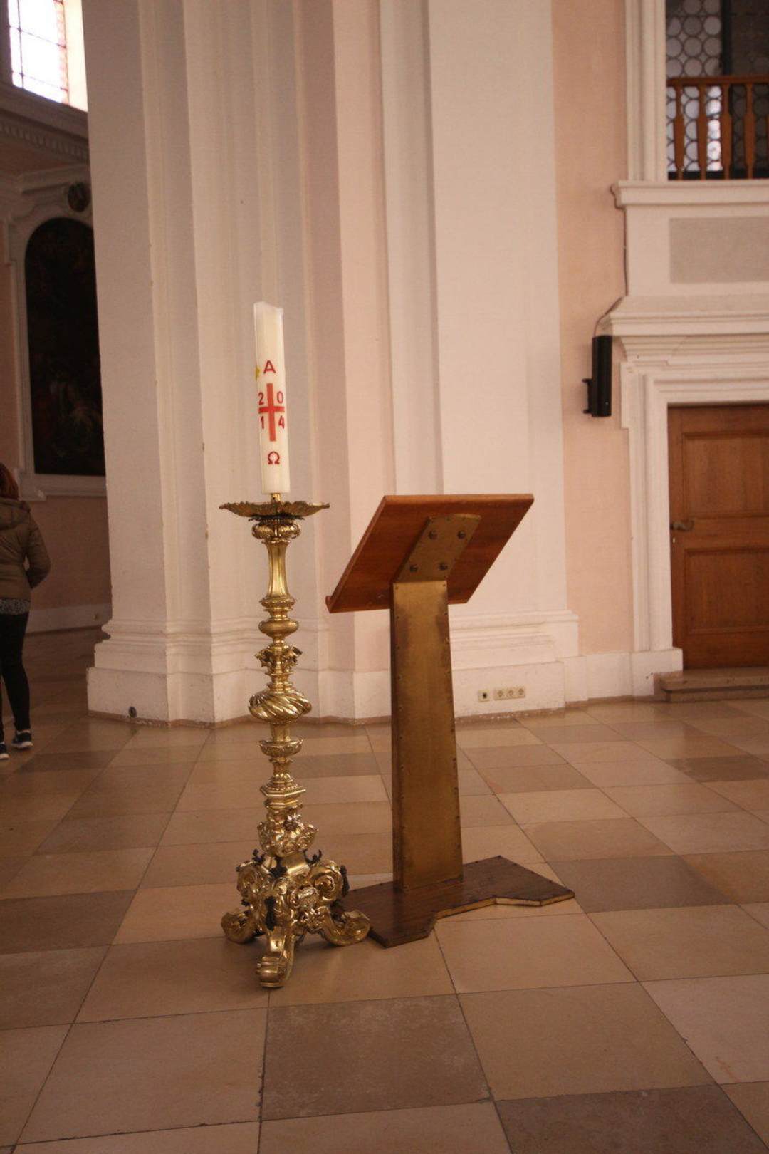 Jahreskerze und Ambo (Lesepult)