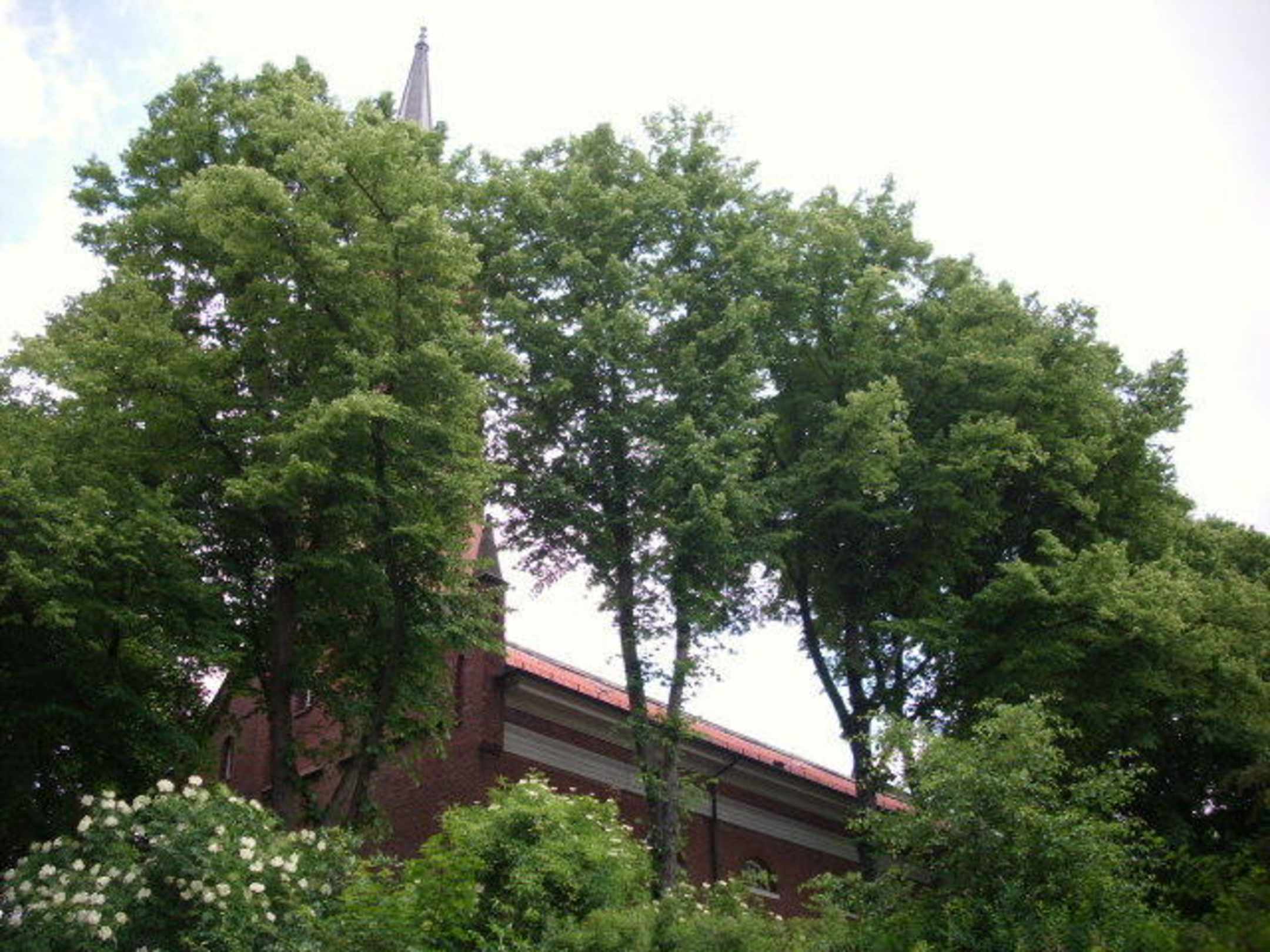 Kirche hinter alten Bäumen