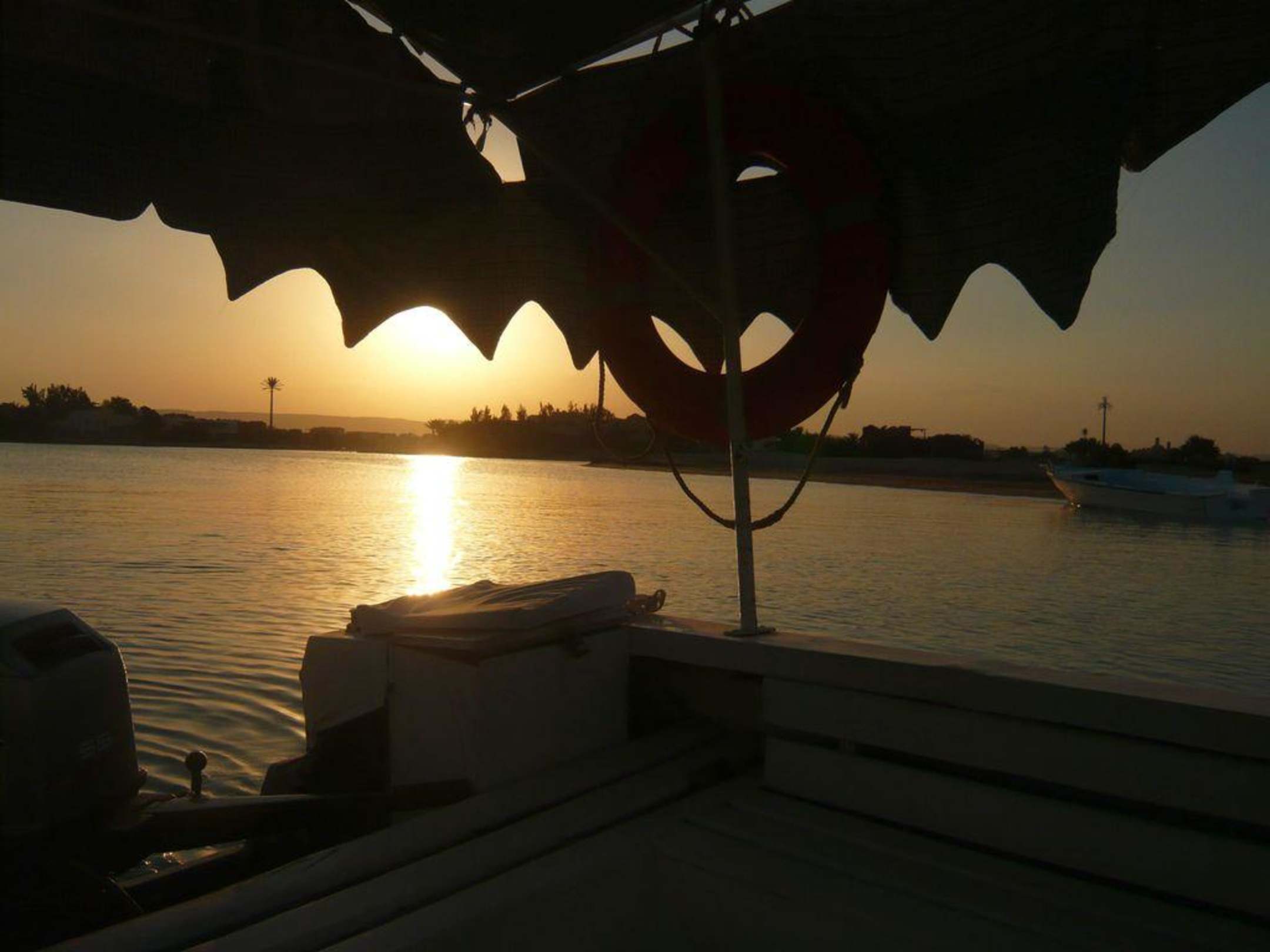 Sonnenuntergang auf einem Lagunenarm im Boot