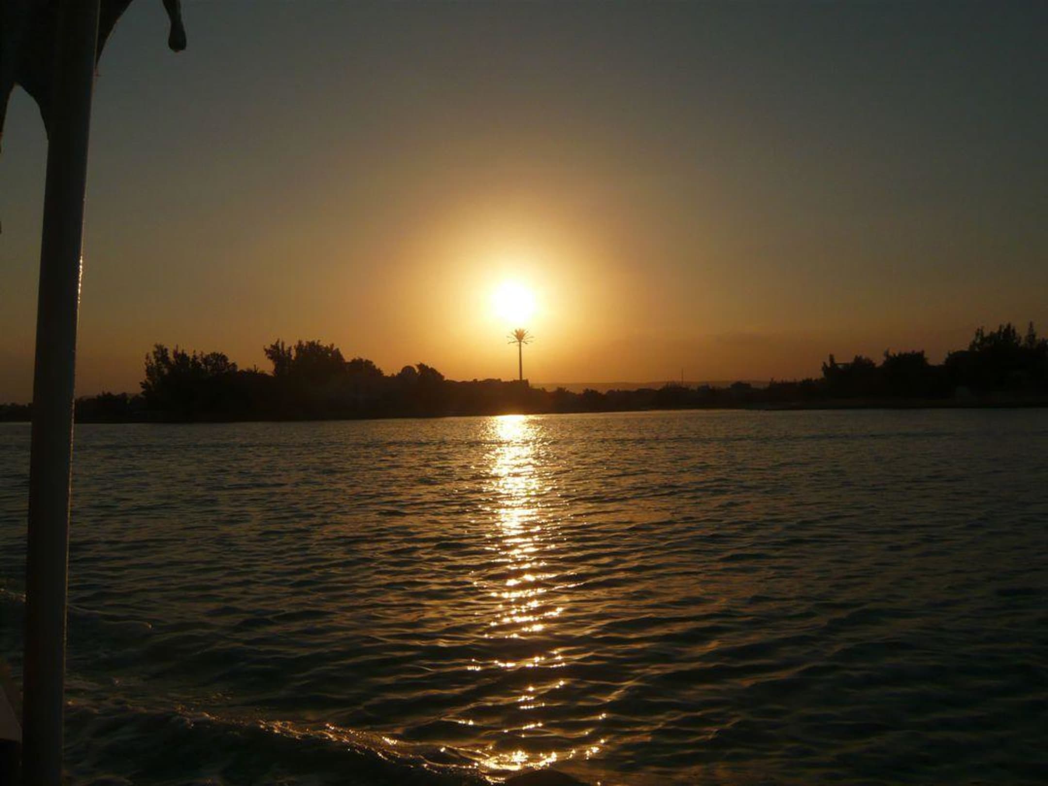 Sonnenuntergang auf einem Lagunenarm im Boot