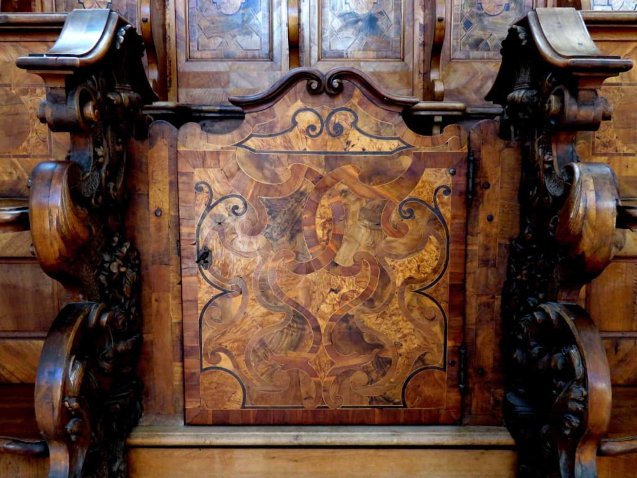 Intarsien am Chorgestühl