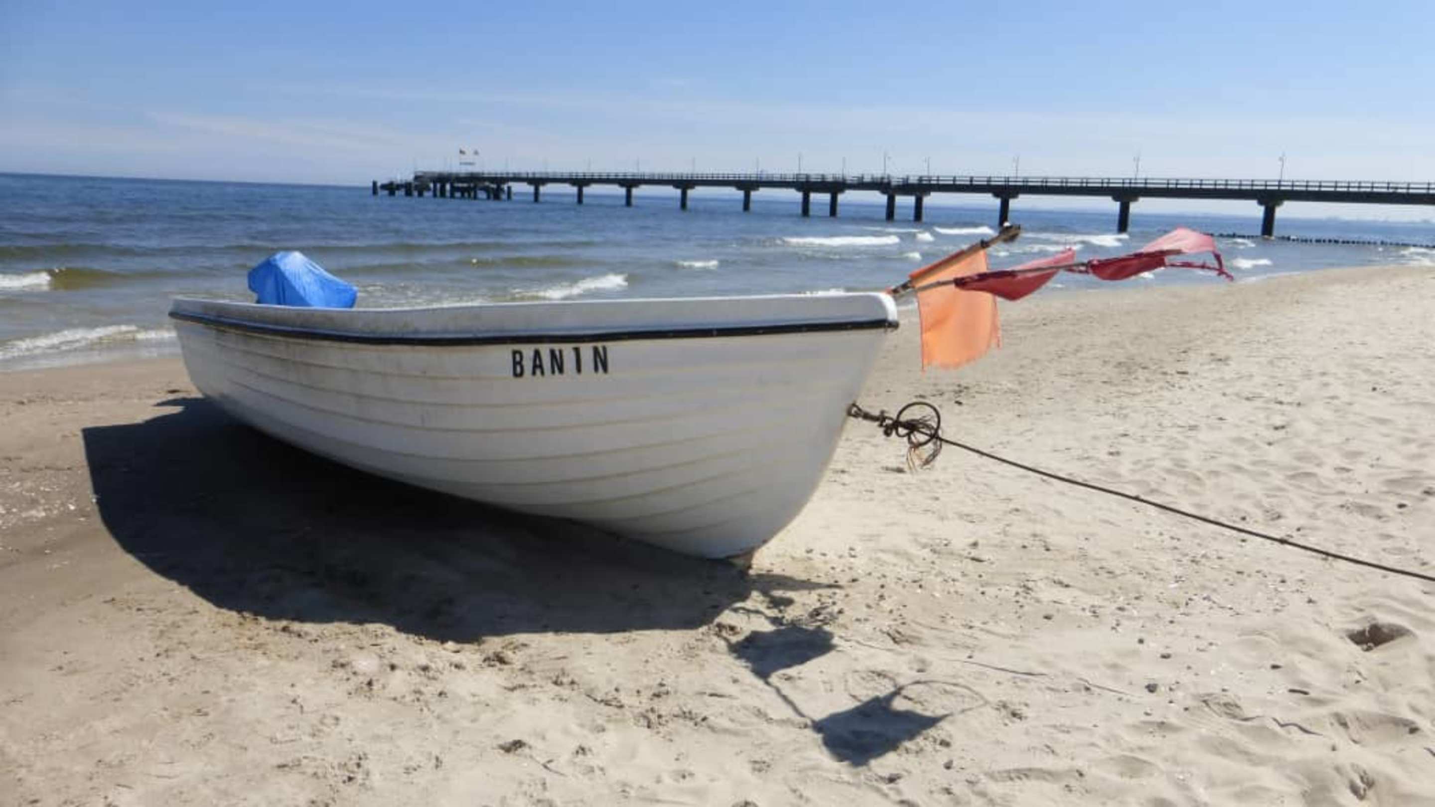 Bansin: am Ostseestrand mit Boot und Seebrücke