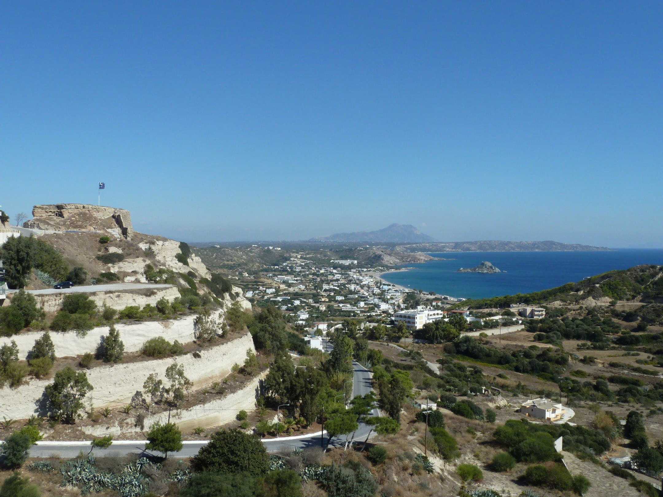 Blick auf die Kamaribucht + Kastell von Kefalos