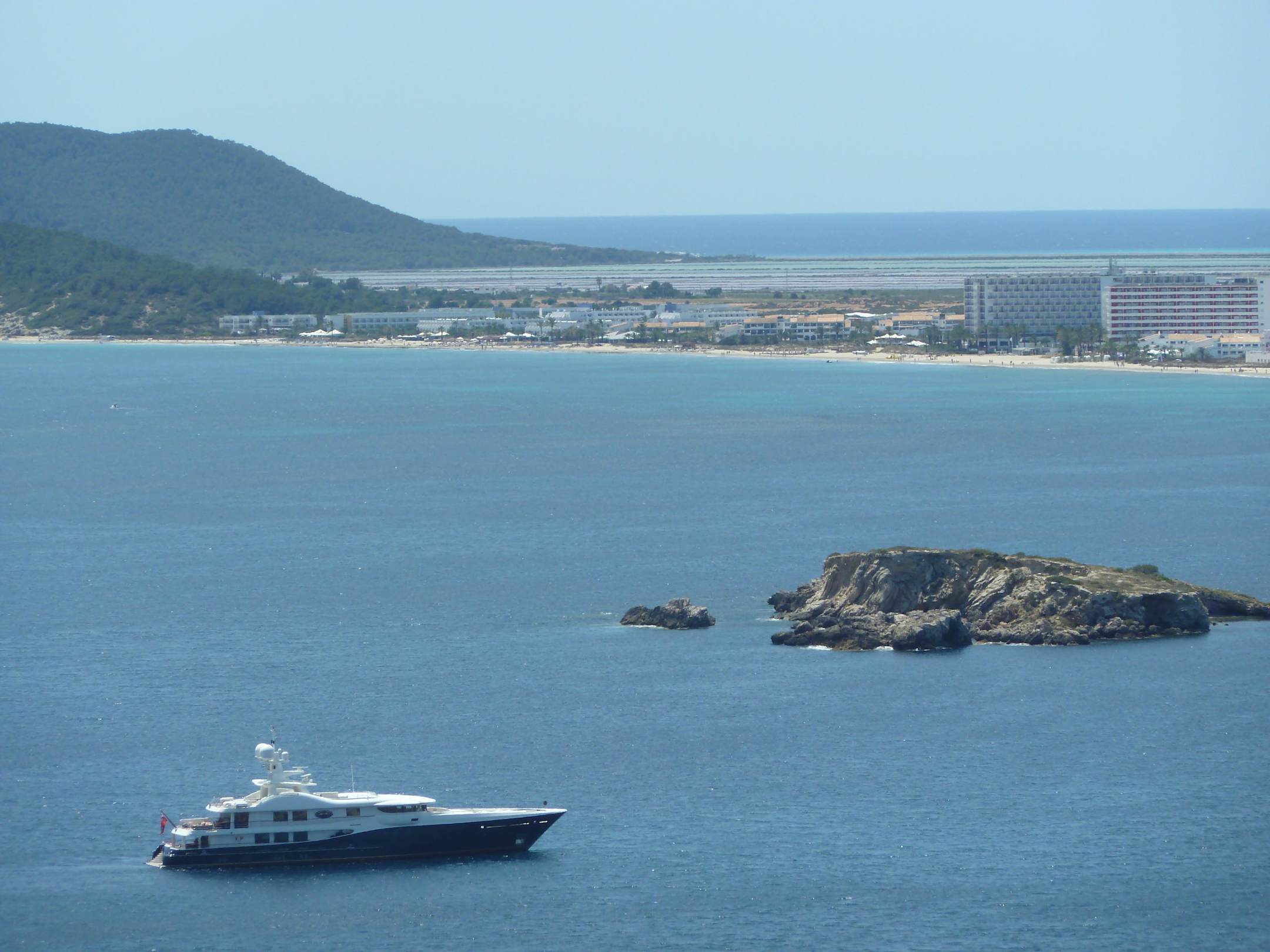 Blick auf Platja d'en Bossa und die Salinen