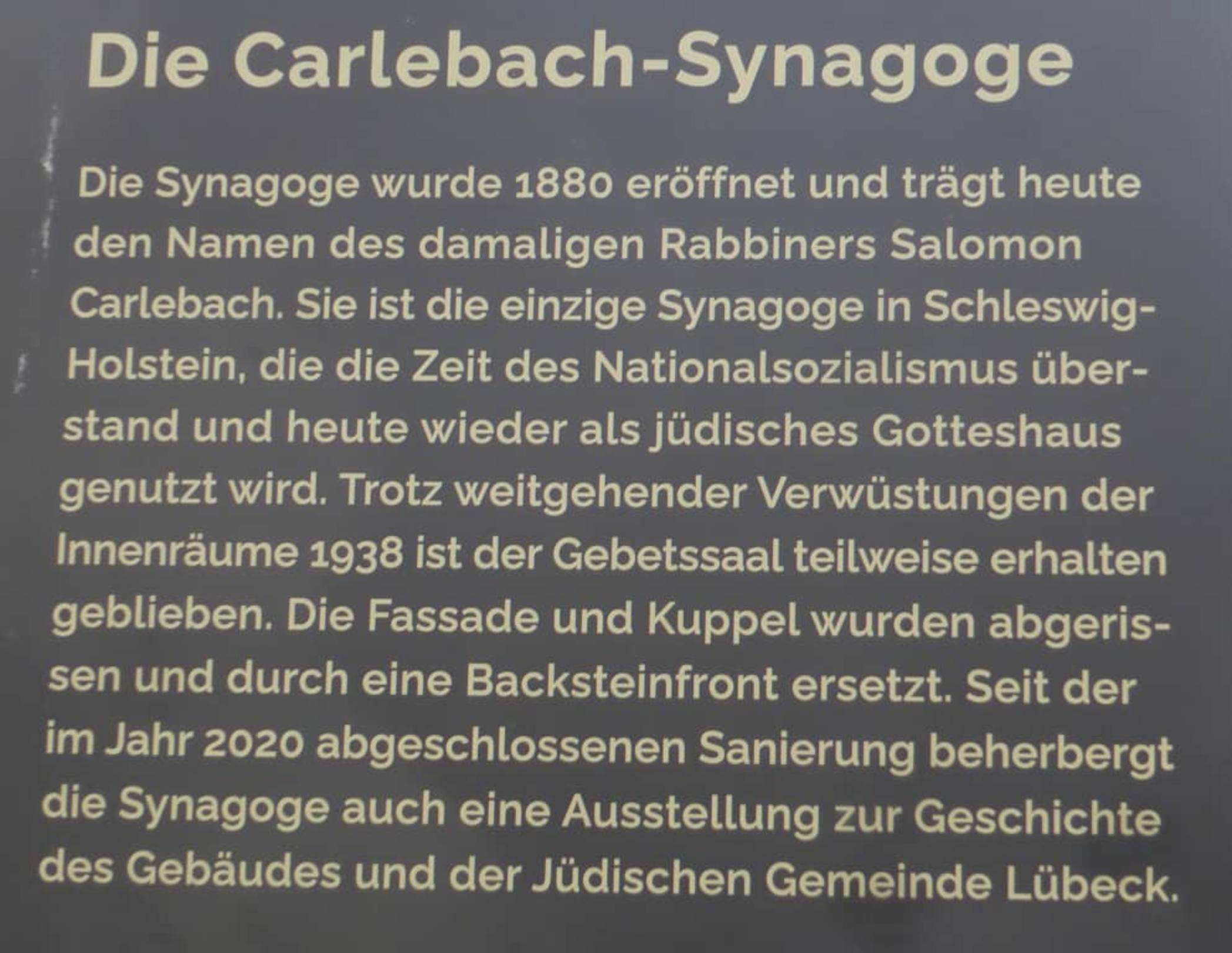 INFO-Tafel an der Carlebach-Synagoge in Lübeck