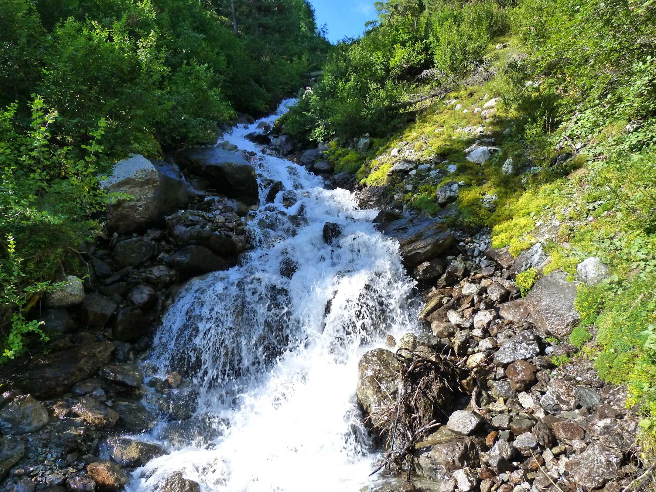 Der Weg führt an stürzenden Bächen vorbei