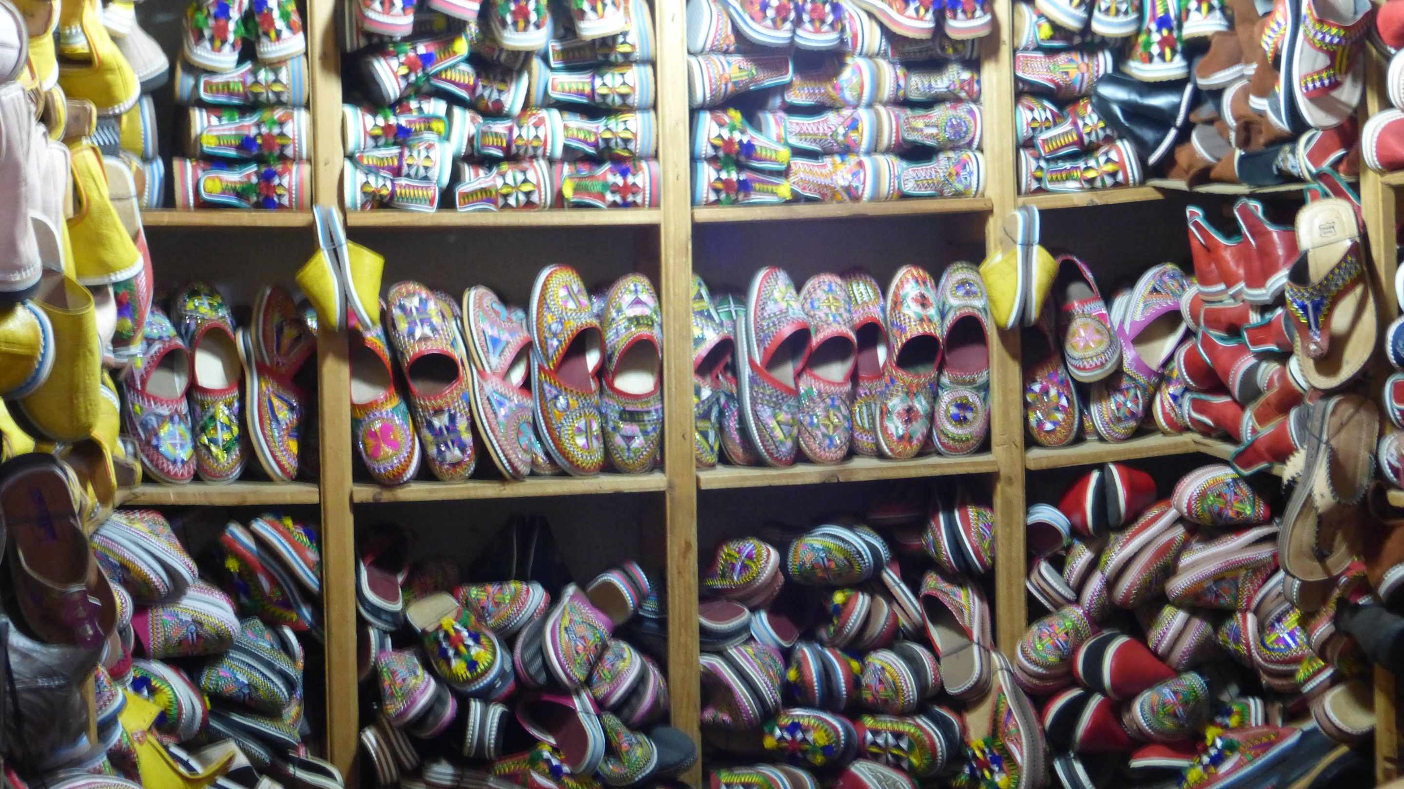 Farbenfrohe Lederschuhe im Souk von Tafraoute