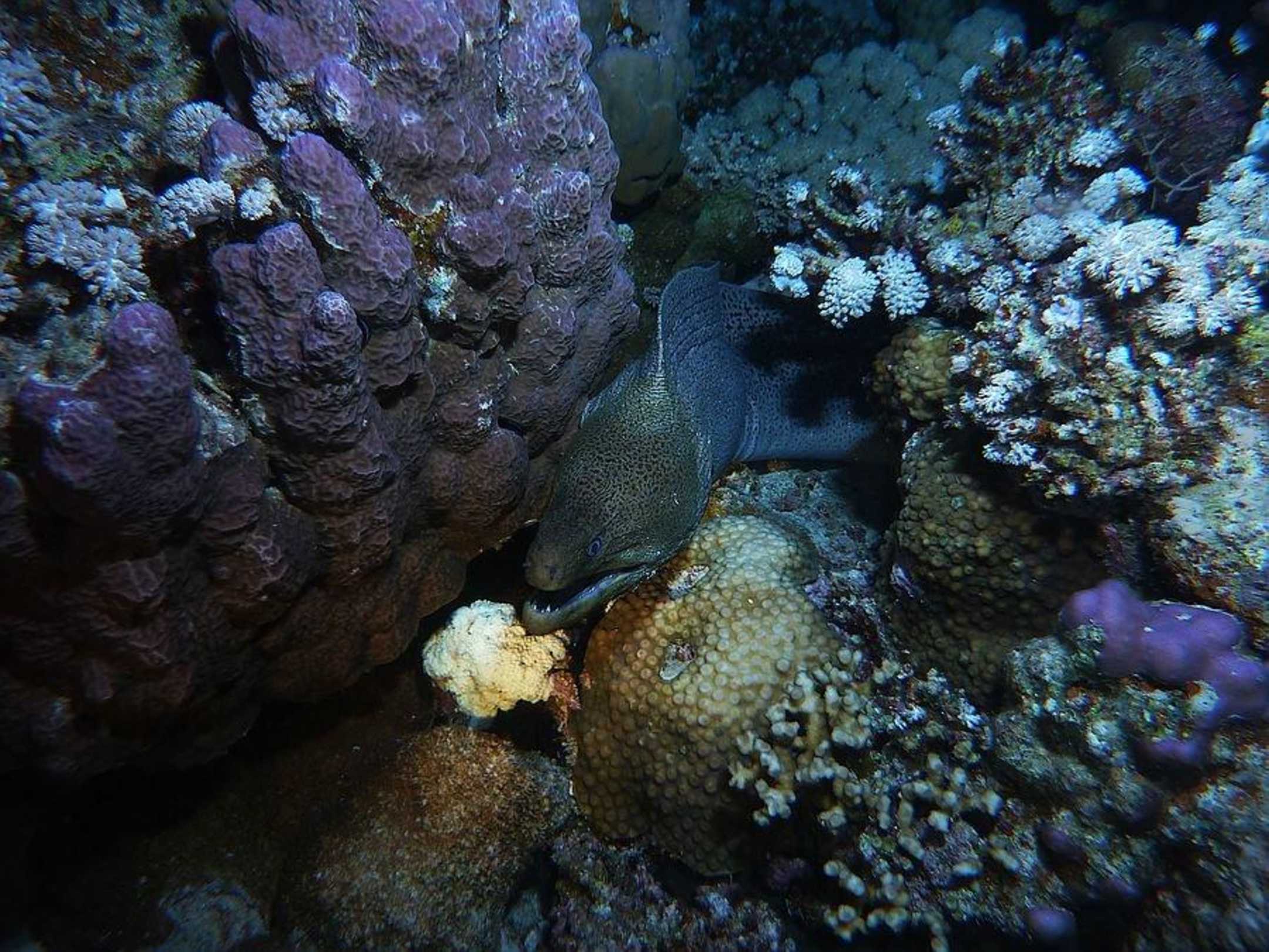 Große Muräne beim Nachttauchgang