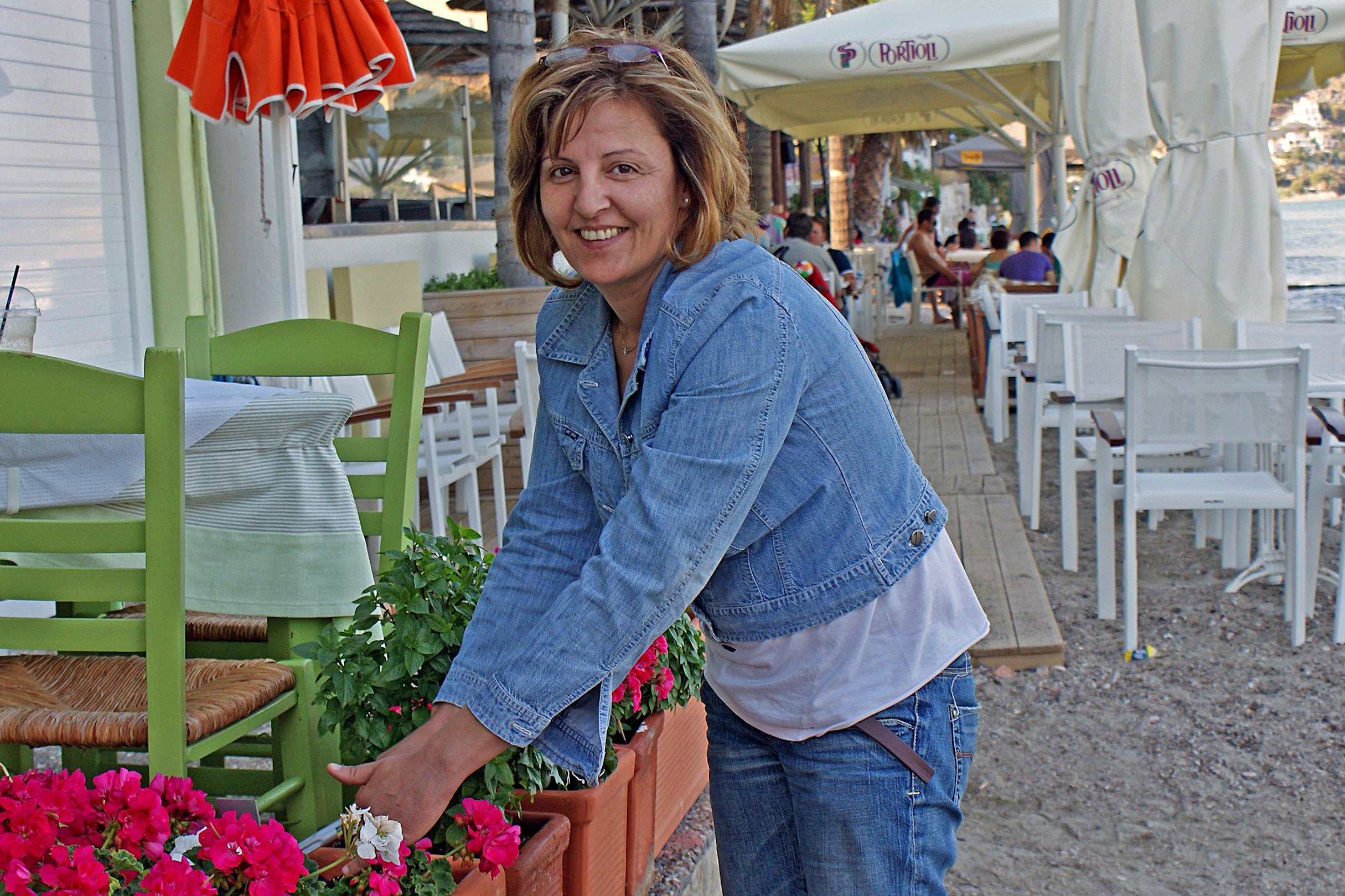 Restaurantbesitzerin Yianna beim Lokal